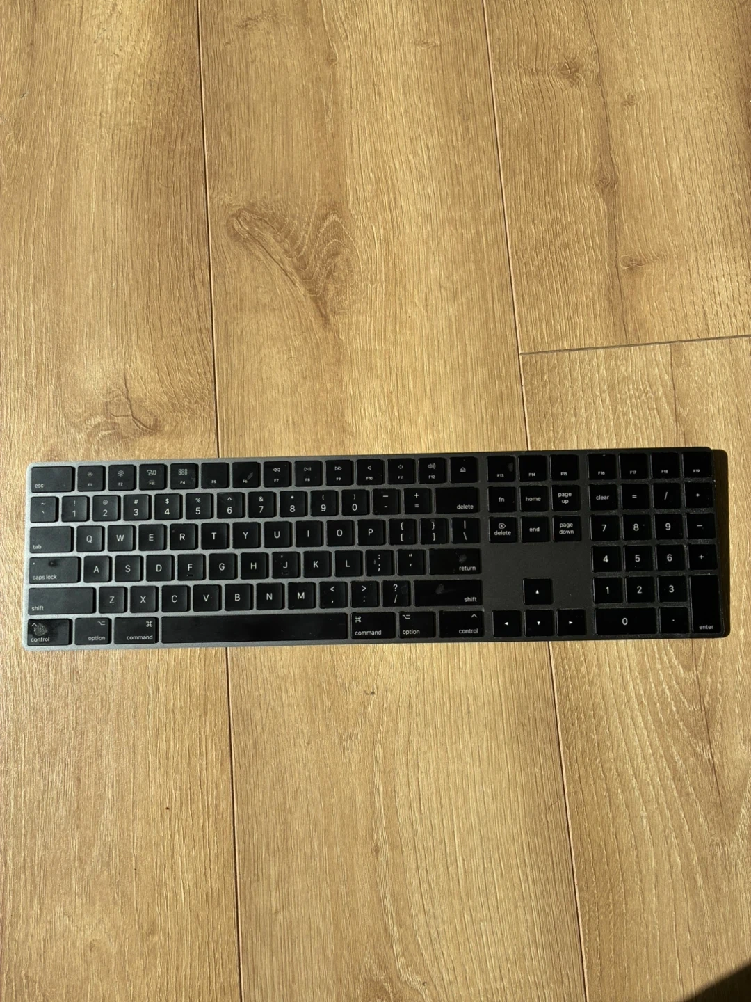 Selling an Apple Magic Keyboard with Numeric Keypad in black. It's in great condition and ready for a new home! This keyboard is super sleek and functional, perfect for anyone needing a full-sized keyboard with a modern look