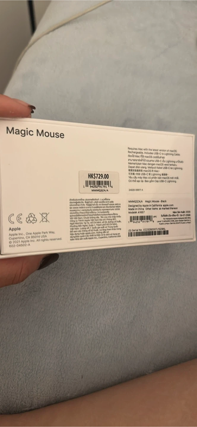 15Selling an Apple Magic Mouse in black! It requires Mac with the latest version of macOS. It includes USB-C to Lightning Cable. The model number is MMMQ3ZA/A. Bought it in Asia but never opened it!! Brand new