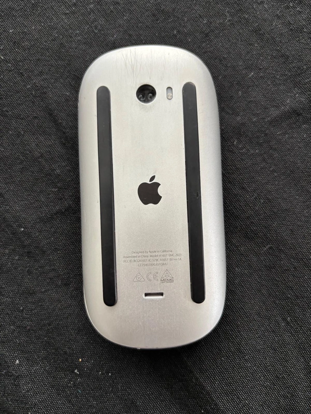 White and silver mouse. It has a simple design. Its bottom side has the brand logo and text. Use this mouse to feel more relaxed while working or browsing. Great mouse