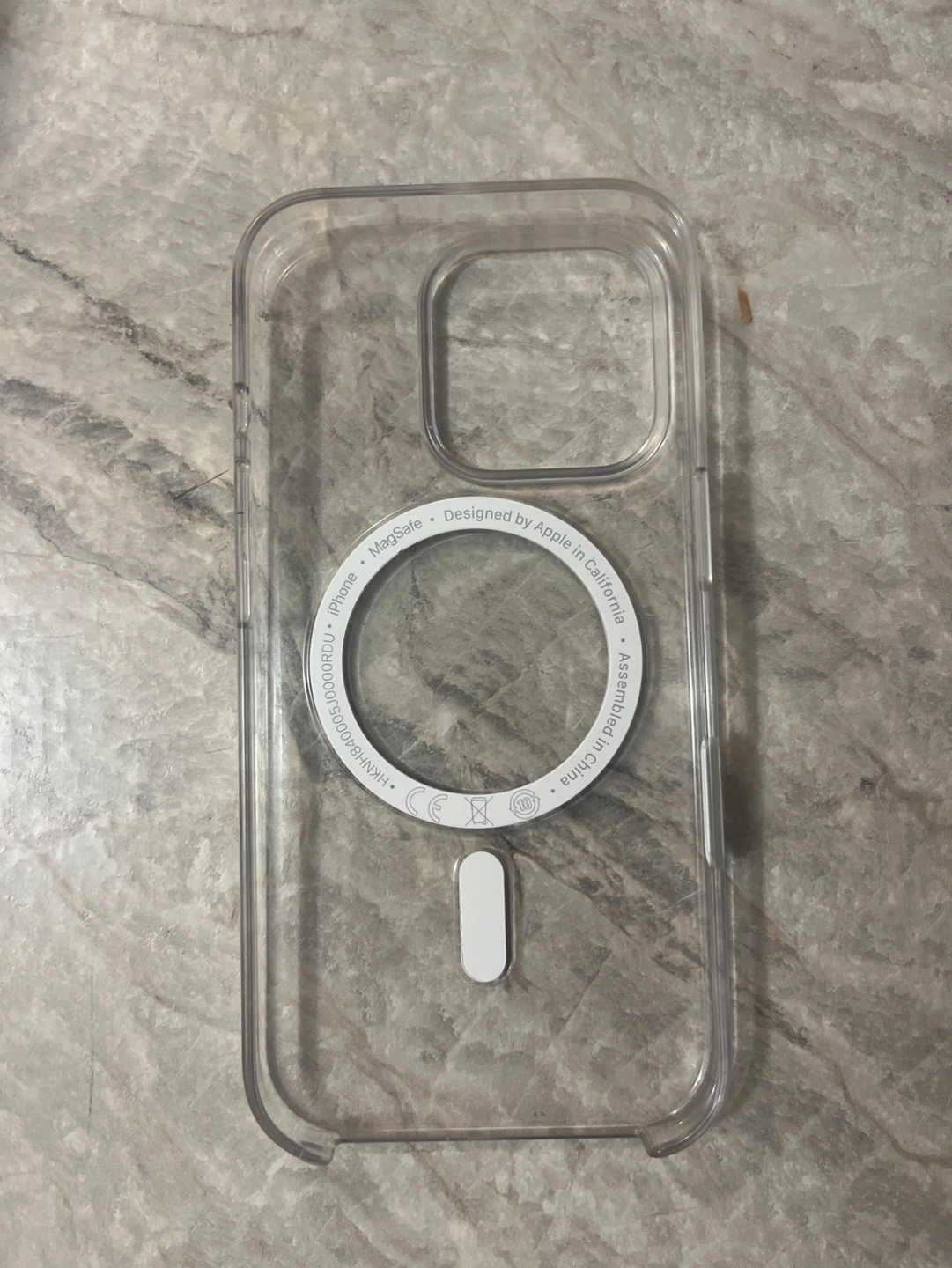 Transparent phone case. Compatible with iPhone 16 pro models. Features a built-in MagSafe ring. Protective and stylish.