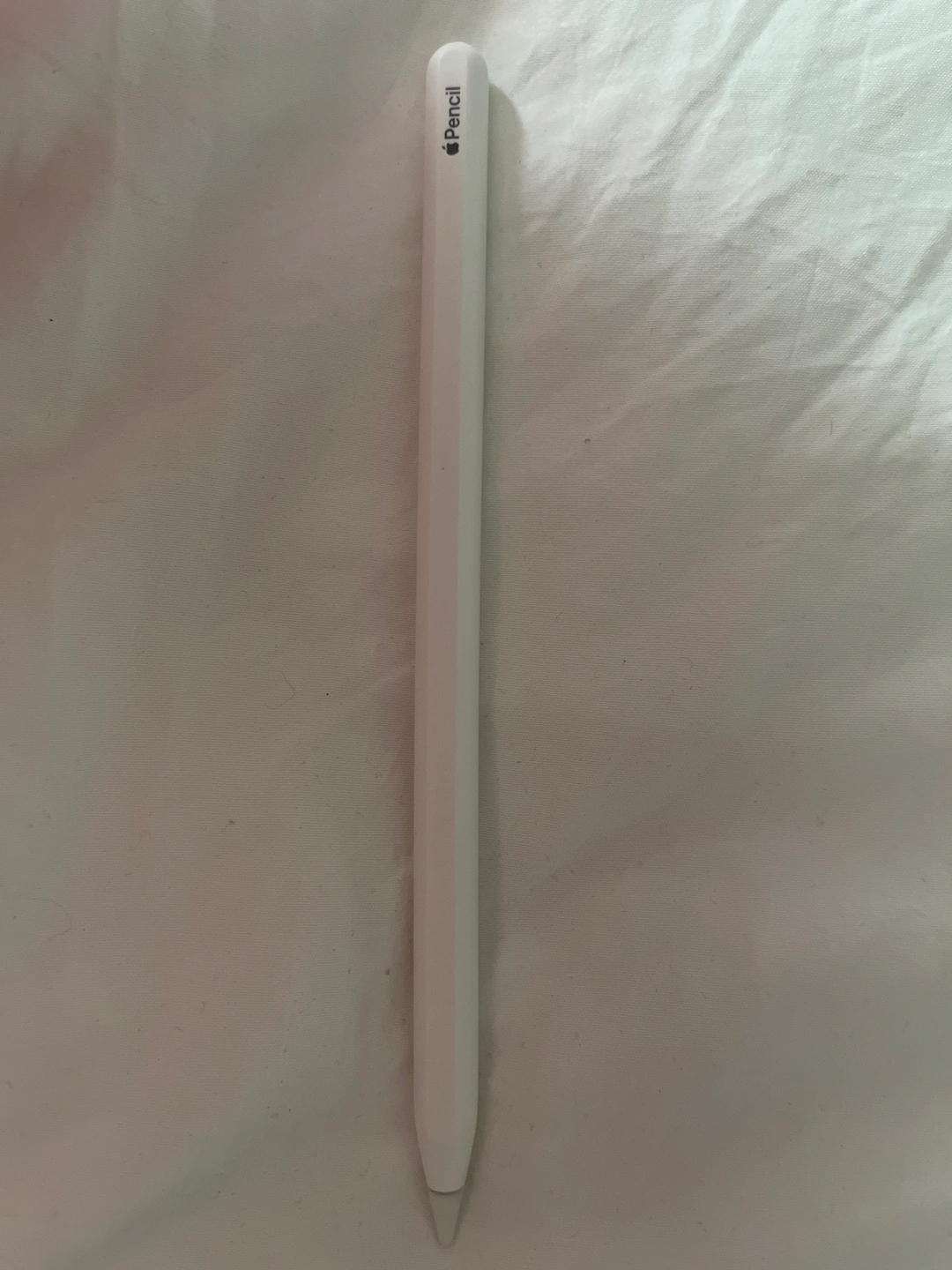 242White Apple Pencil 2nd generation. Designed for iPad Pro, iPad Air, and iPad mini, it features a flat edge that attaches magnetically for automatic charging and pairing. Didn’t use the pencil much and iPad was stolen.