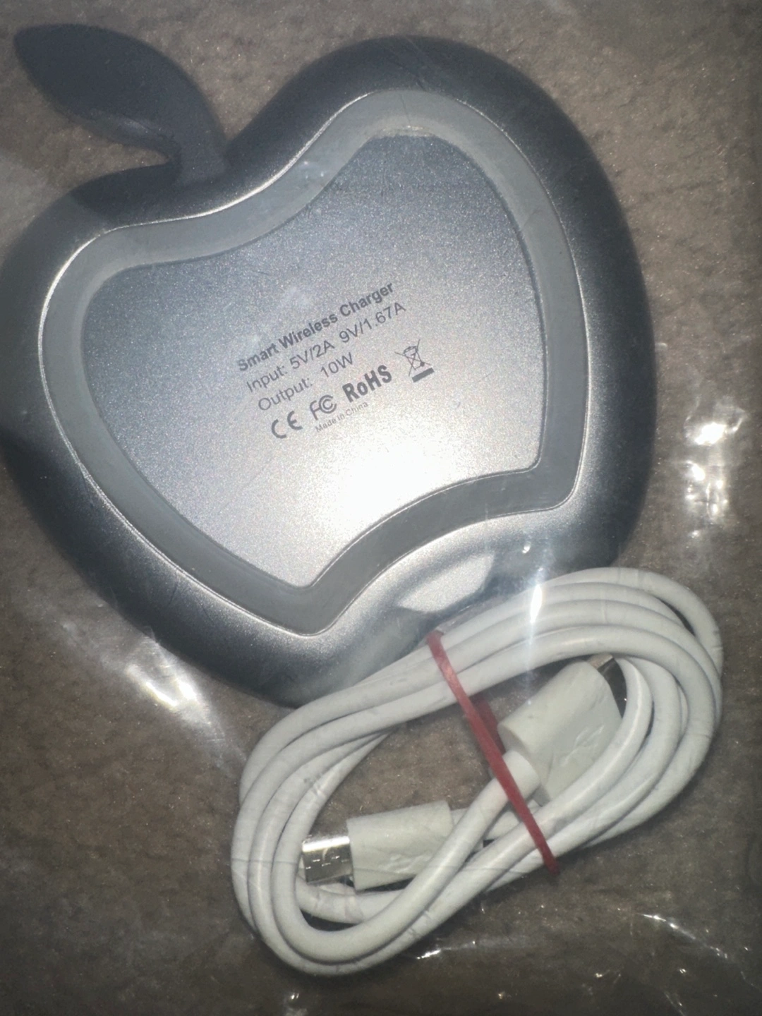 Smart wireless charger. Apple design. Includes USB cable. 10W output.