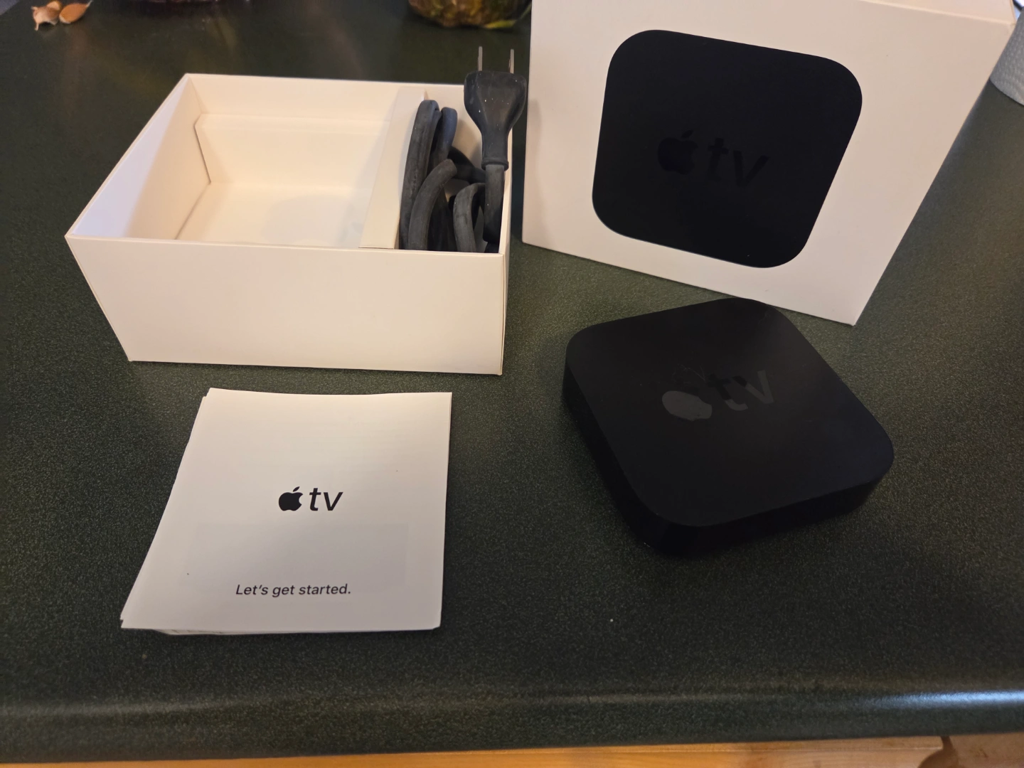 Apple TV 2nd or 3rd generation media player. Includes power cord, remote and quick start guide.
