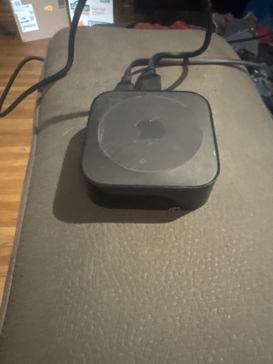 Used Apple TV streaming device. Includes power cable and hdmi cord