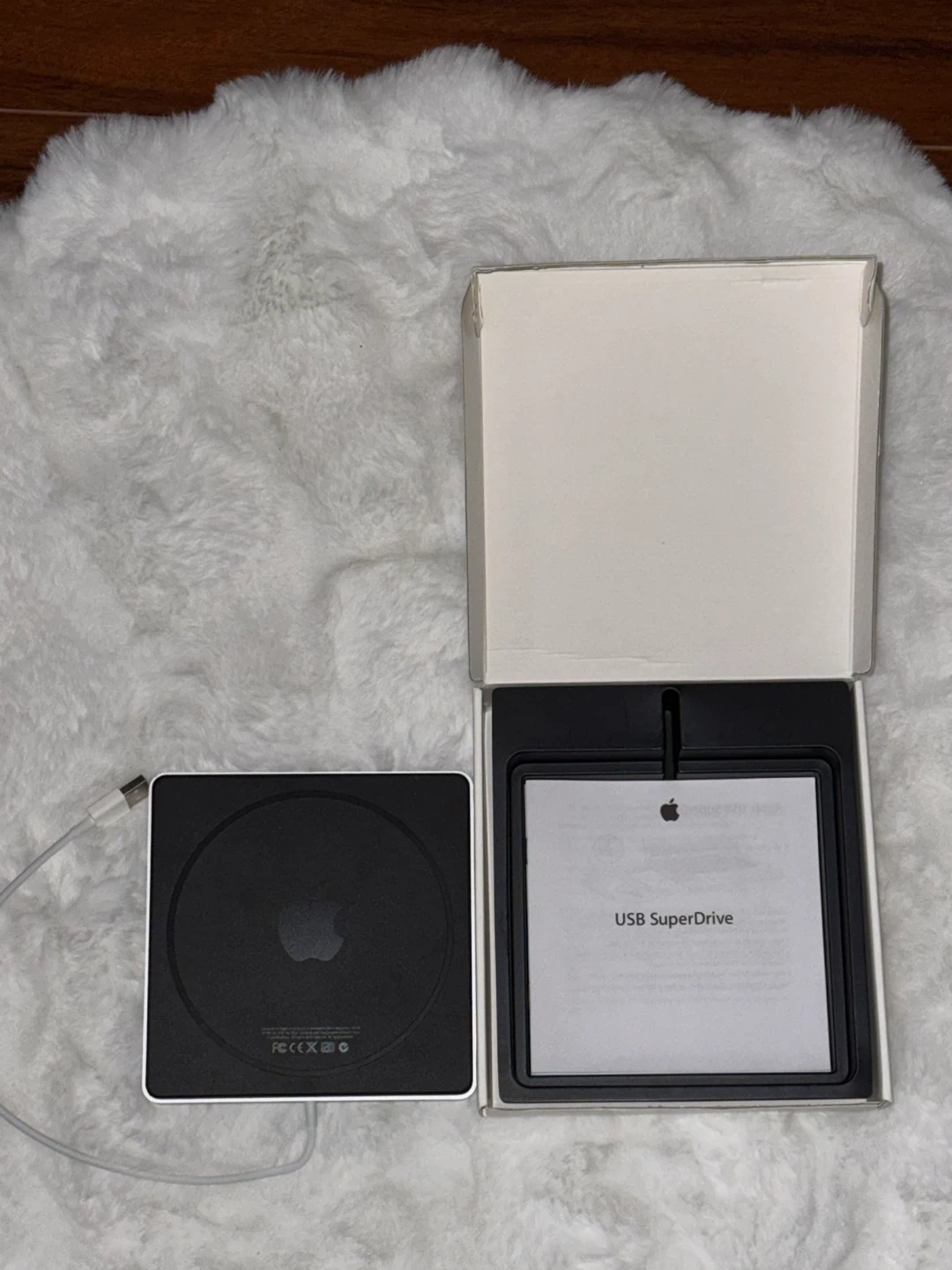 18Cash Only Excellent Condition! Selling an Apple USB SuperDrive in excellent condition! It comes with the original box and instructions. Perfect for anyone needing an external optical drive for their Mac Connect it to your MacBook and watch your movies in DVD format.