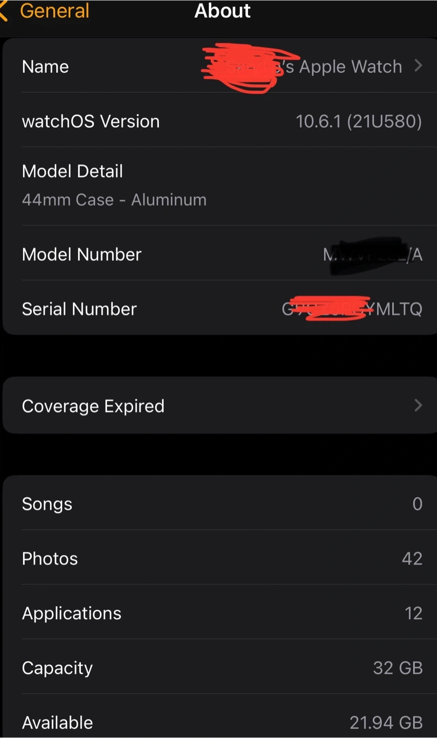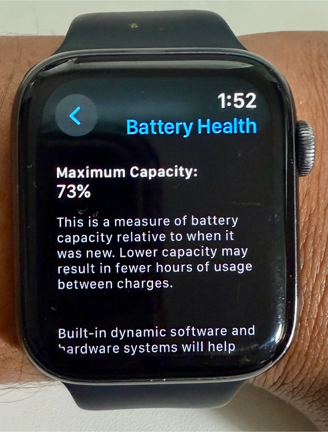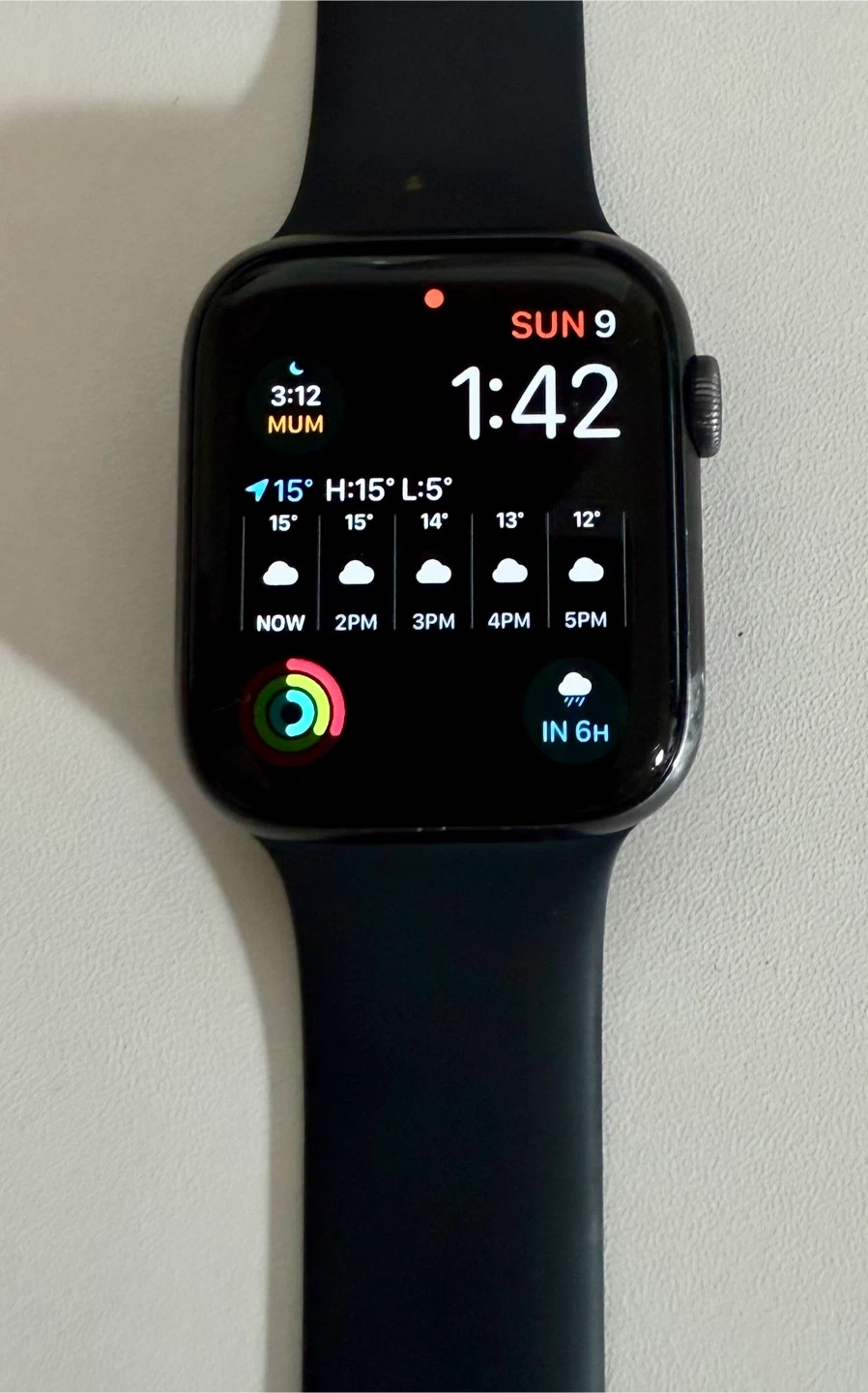 92Apple Watch Series 5 Urgent Sale!! Selling an Apple Watch with a 44mm Aluminium case in black. The watchOS version is 10.6.1 (21U580). Maximum Battery Capacity: 73% Comes with the box, original belts and charger! Location - Langley Event Centre Price is negotiable. If interested message soon.