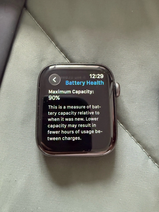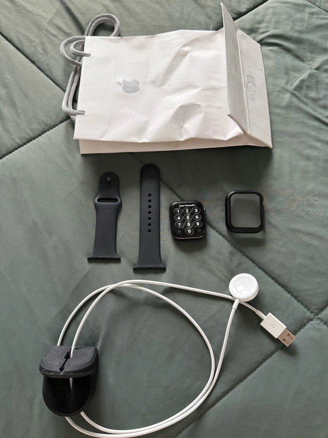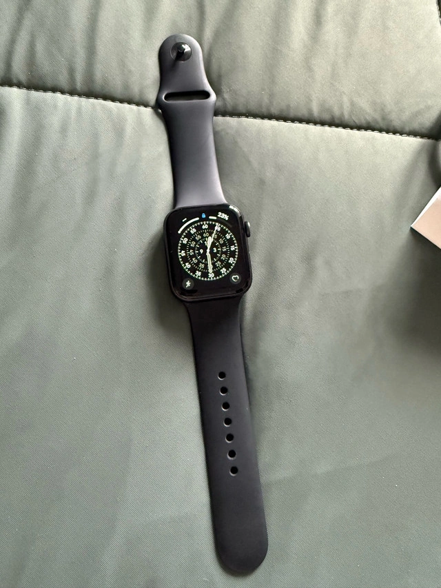 Perfect condition, barely used (once a week on average). I only charged it based on need, so it has perfect battery health of 90%. Minimal scratches, barely noticeable. Comes with original strap, charger, charging stand and a screen protector. Selling as I got the new one as a birthday gift. Proof of purchase available. PS. I can supply the watch box at no extra cost. However, it’s in the US and I can bring it in December. Price is final, pickup from Oakville
