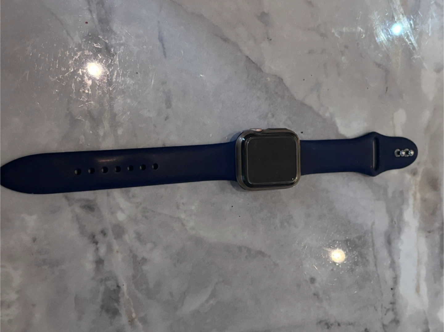24Apple Watch Series 4 – Excellent Condition Apple Watch Series 4 with a clear protective case and dark blue band. The watch is in very good condition with only minimal signs of wear. Charger and original box not included. ✅ Works perfectly ✅ Clear case and stylish dark blue band included ✅ Well cared for and clean Perfect for everyday use or fitness tracking.