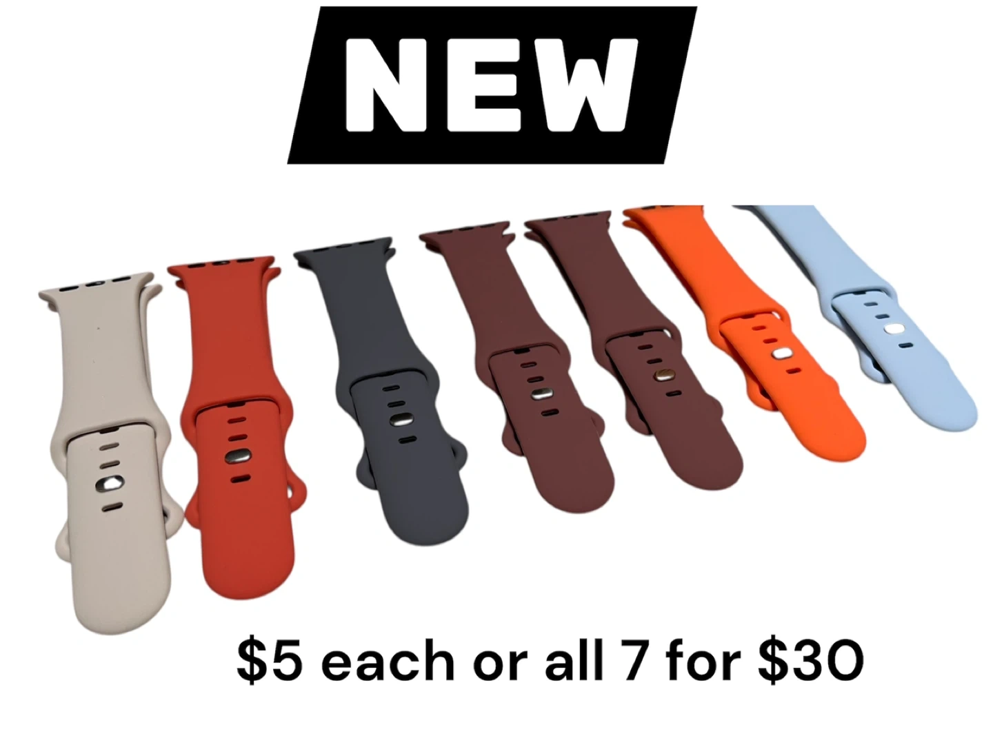 Selling a collection of Apple Watch bands in various colours! Spice up your Apple Watch with these fun and stylish bands. Colours include beige, orange, light blue, 2 maroon, dark grey, and coral. Perfect for any occasion! Size small/medium. $5 each or all for $30