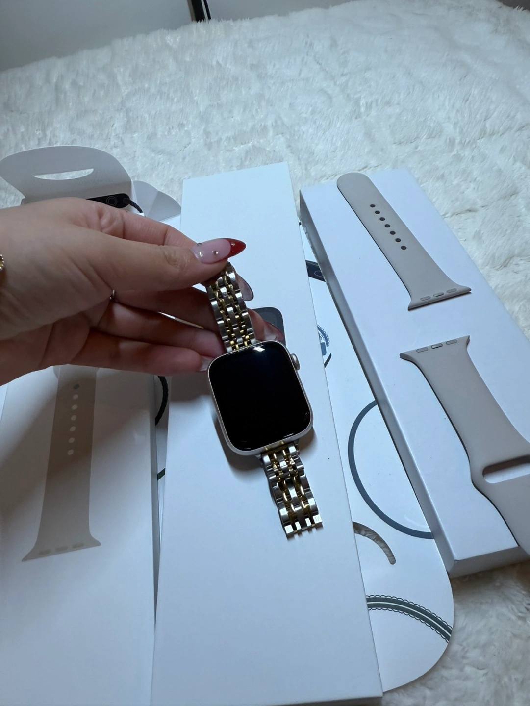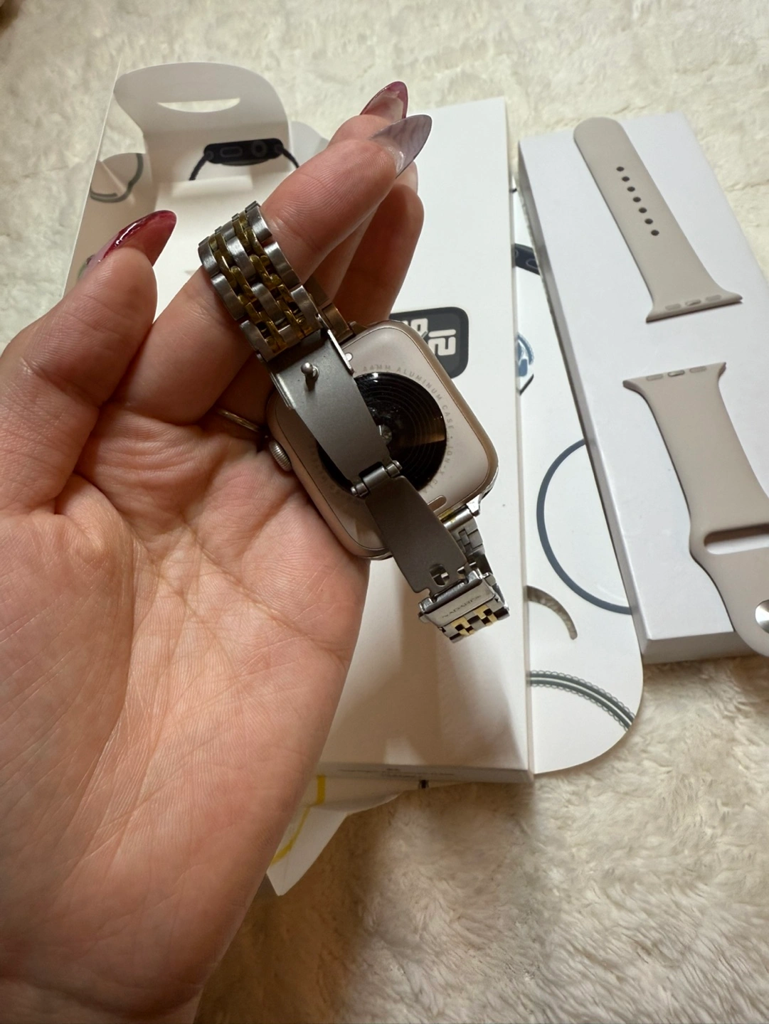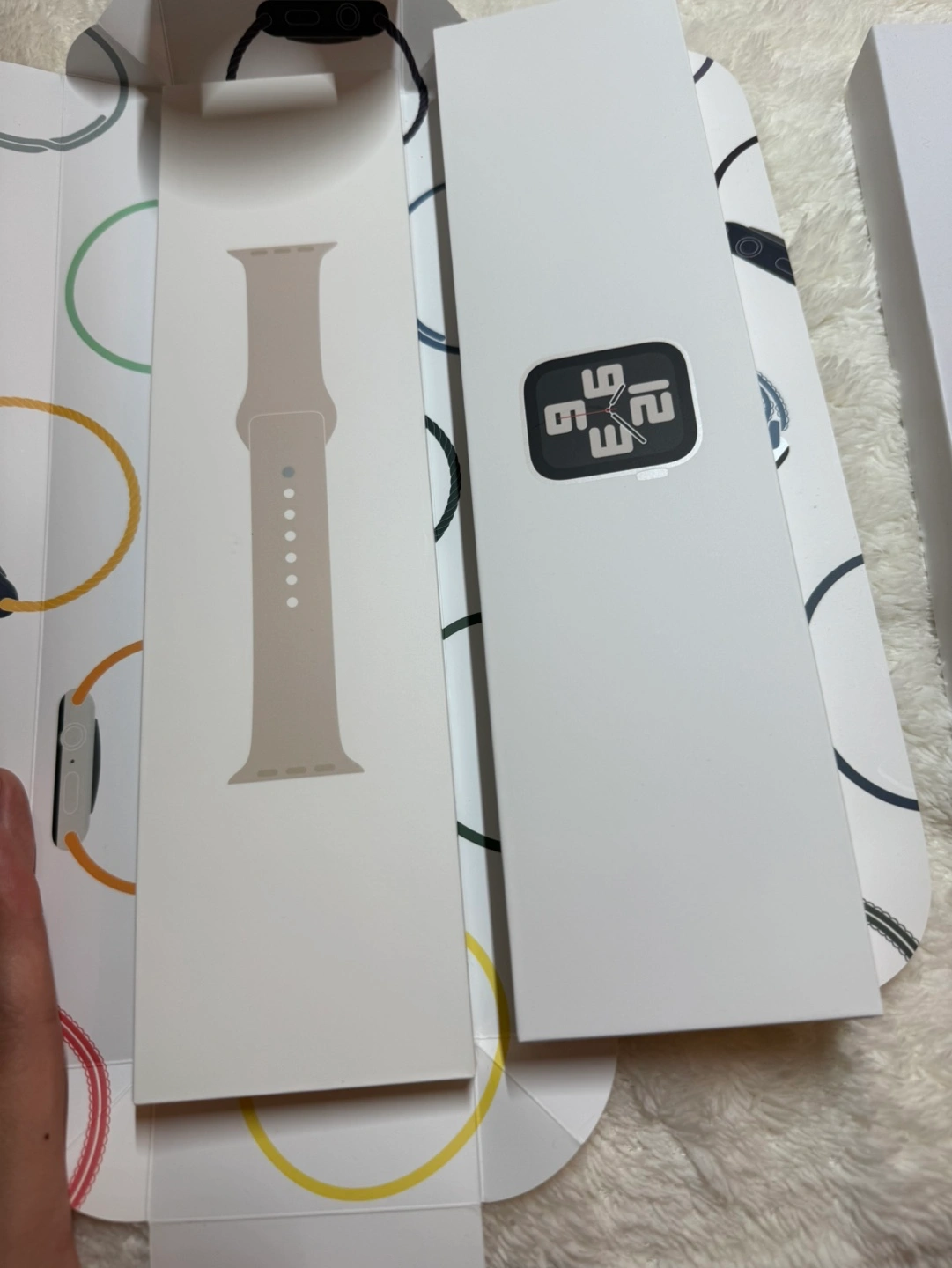 69Brand new Apple Watch SE. Starlight Aluminium case. 40mm. Includes sport band and box. I worn few times , perfect condition. Two straps come with, both are waterproof.