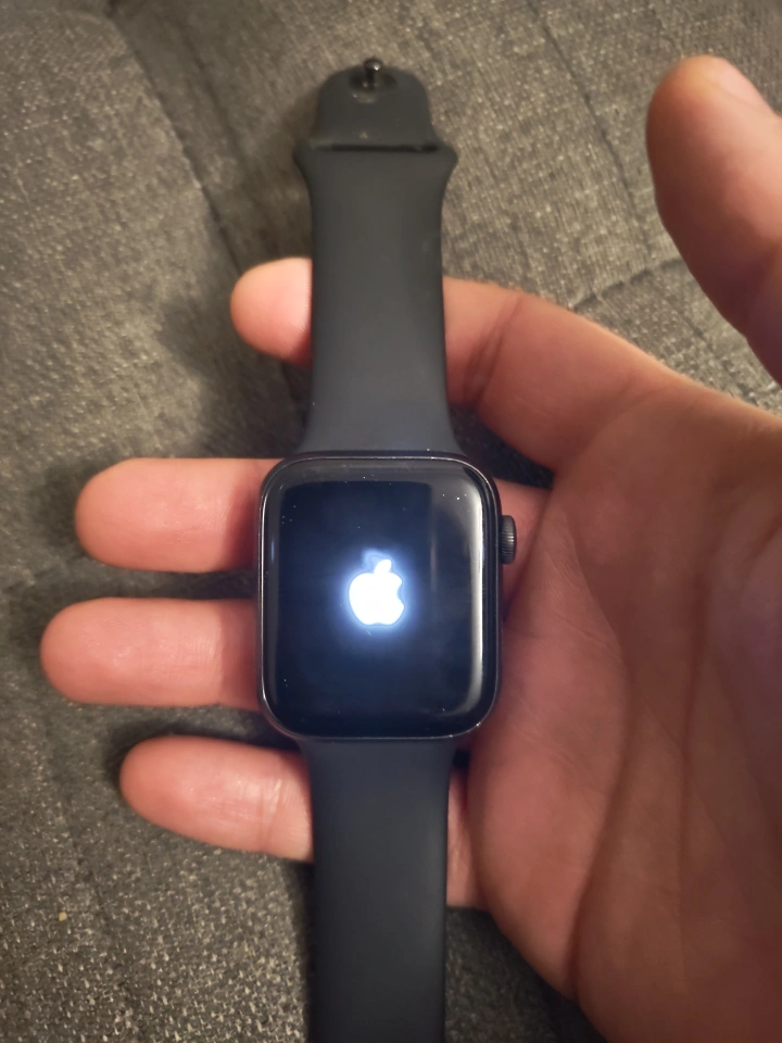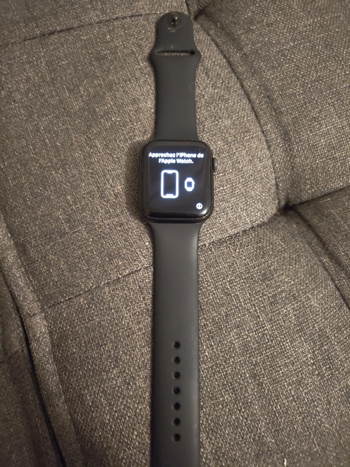 Black Apple Watch SE with black sport band. Comes with charging cable.