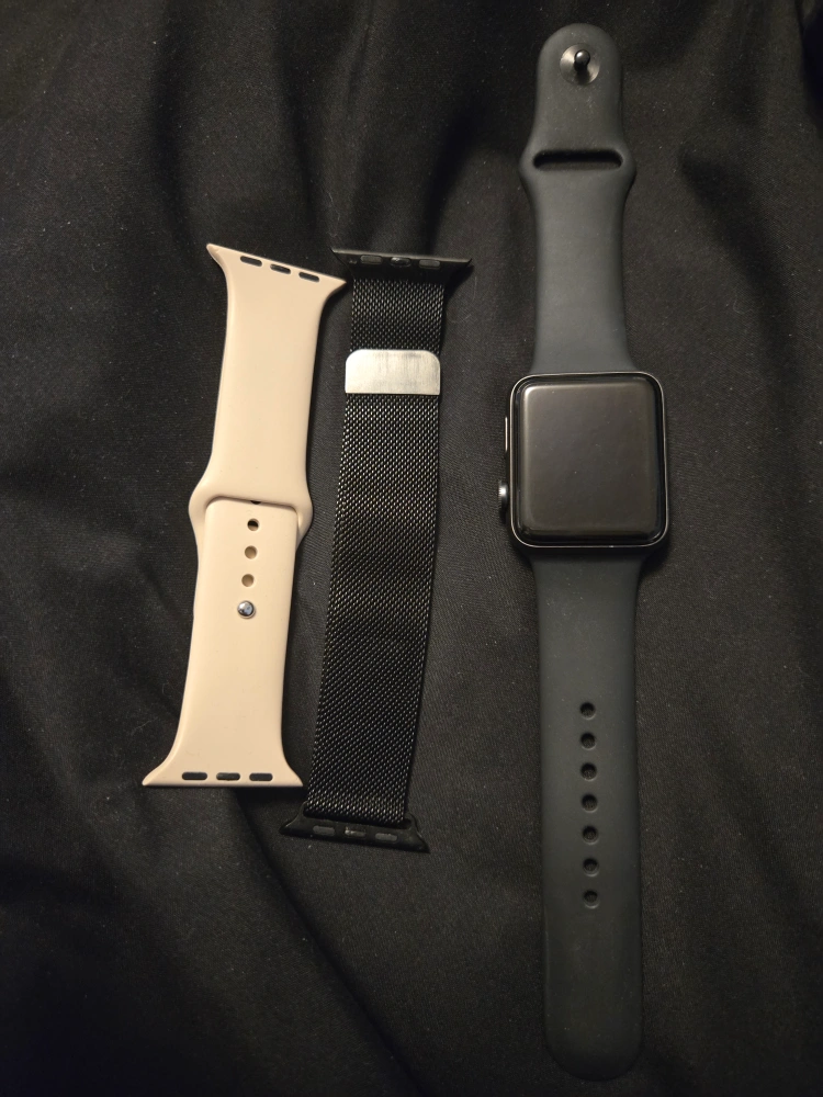 78Selling an Apple Watch Series 3, 42mm aluminum case. Comes with a composite back and Ion-X glass. Includes two extra bands, original box, charging cable.
