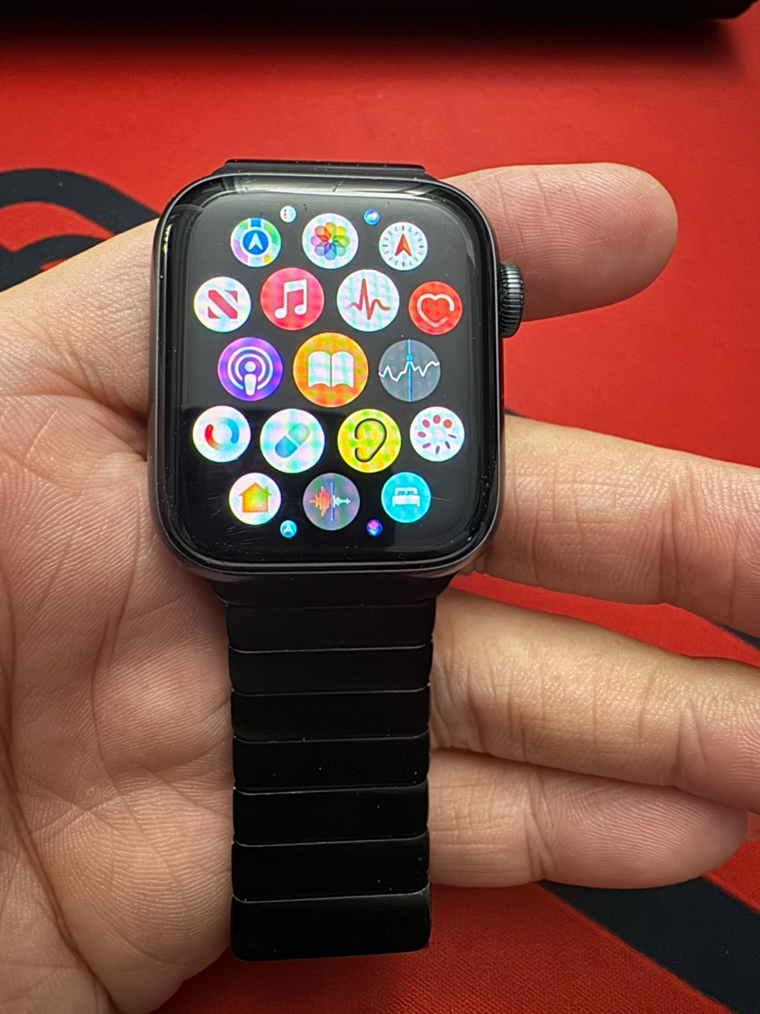 40Apple Watch Series 6 with 32GB. Black stainless steel Milanese Loop band. Model number MG1A3VC/A. Good condition. Includes charger. No major dents or crack