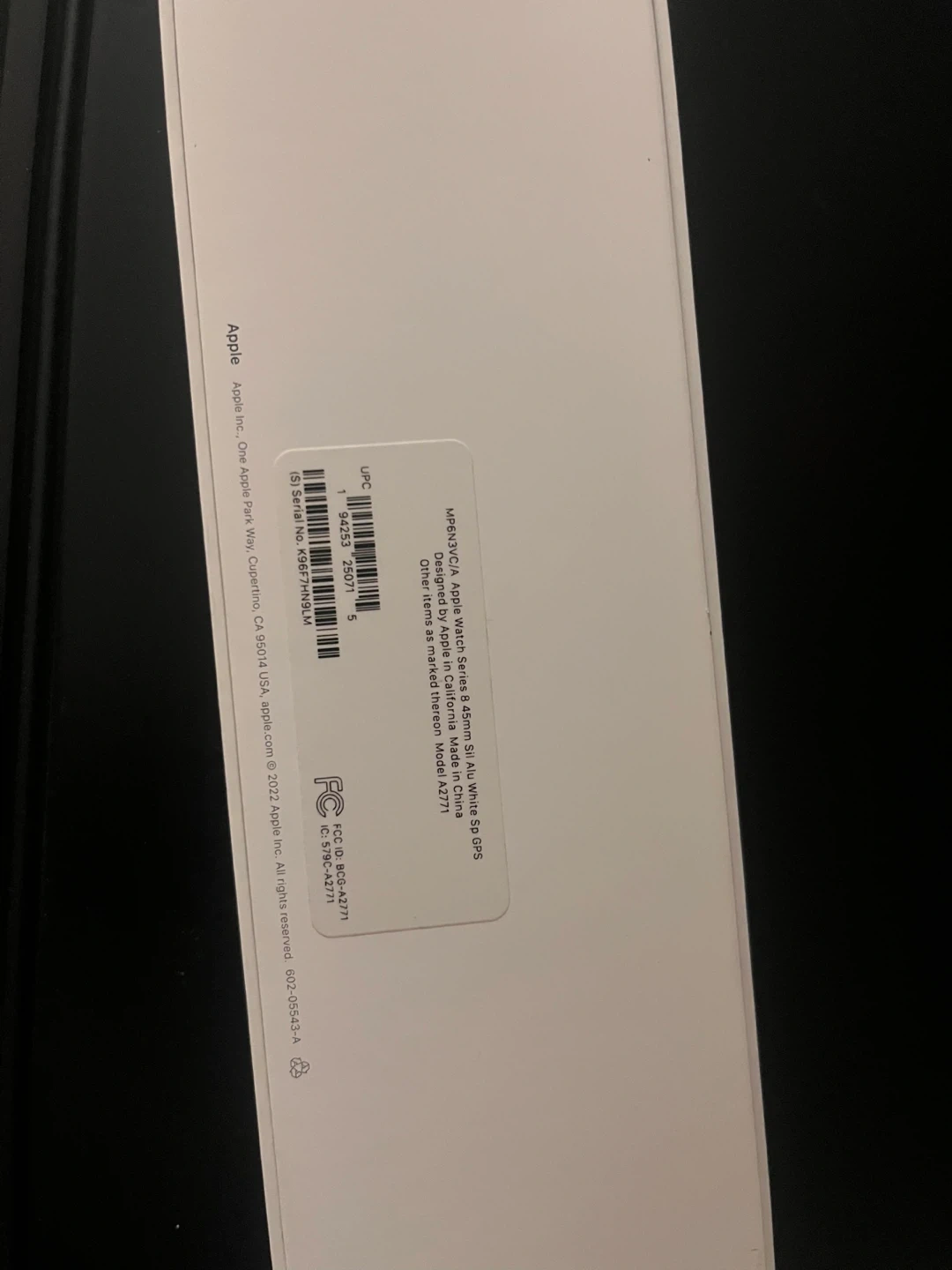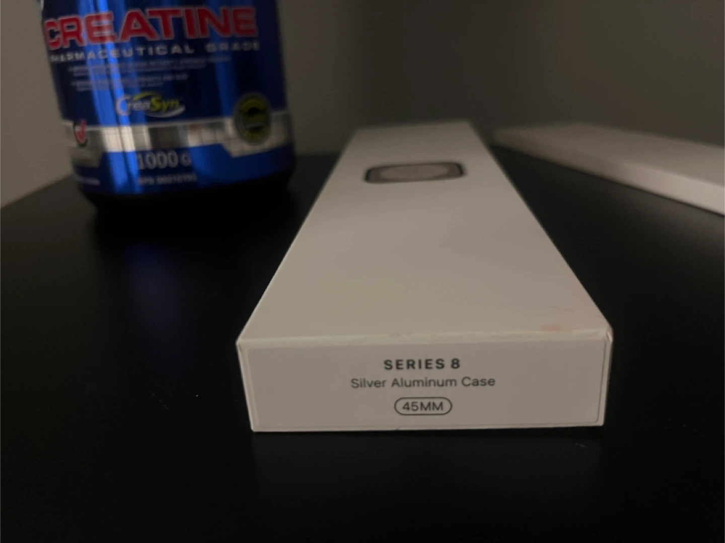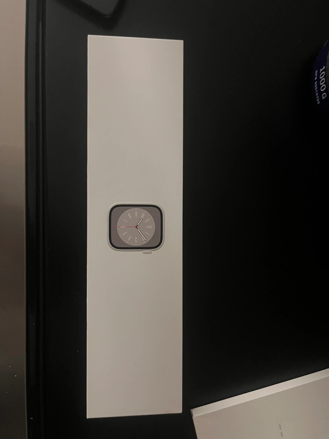 Selling an Apple Watch Series 8 with a silver aluminum case in the 45mm size. It comes with the original box. This is model A2771.