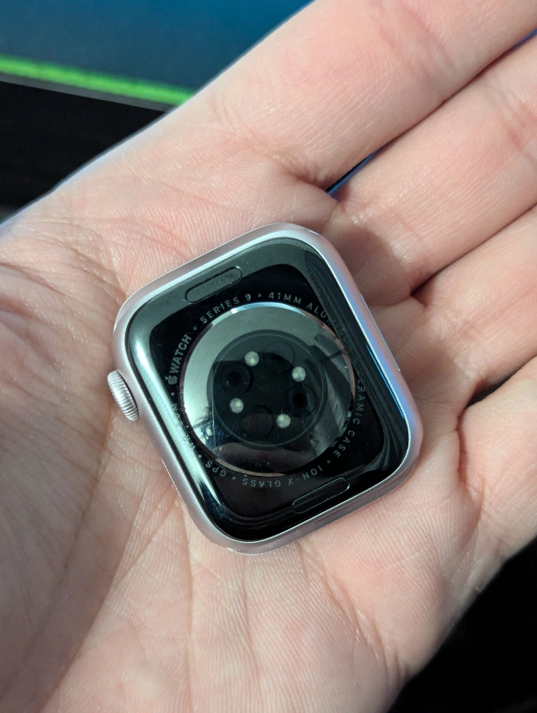 Apple Watch Series 9, 41mm. Comes with charging cable but no box. used it basically twice before my lady decided she prefers her Casio. no scratches, %100 battery