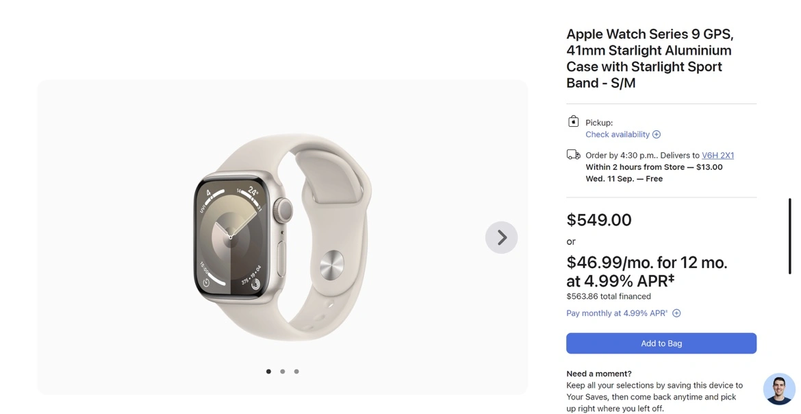 ⌚️an Apple Watch Series 9, 41mm, in Starlight Aluminum with a Starlight Sport Band ✔️ Even with new package (VERY NEW) ✔️ Genuine product from Apple Store ✔️ Currently it is being sold at this price in the Apple Store ($549) If you have any questions, feel free to let me know (: FYI; I already have another watch and this one got it as a gift. First come first served !