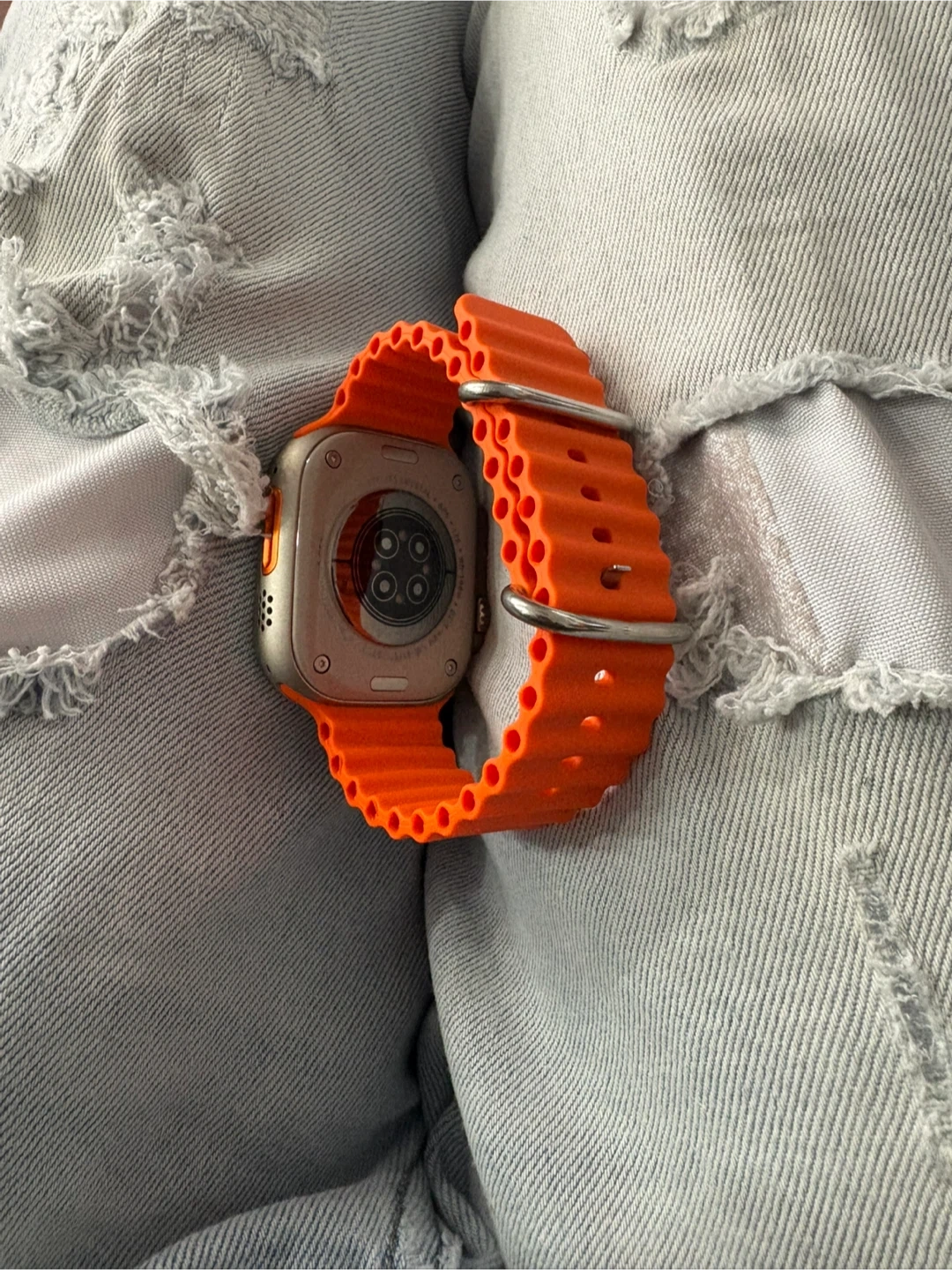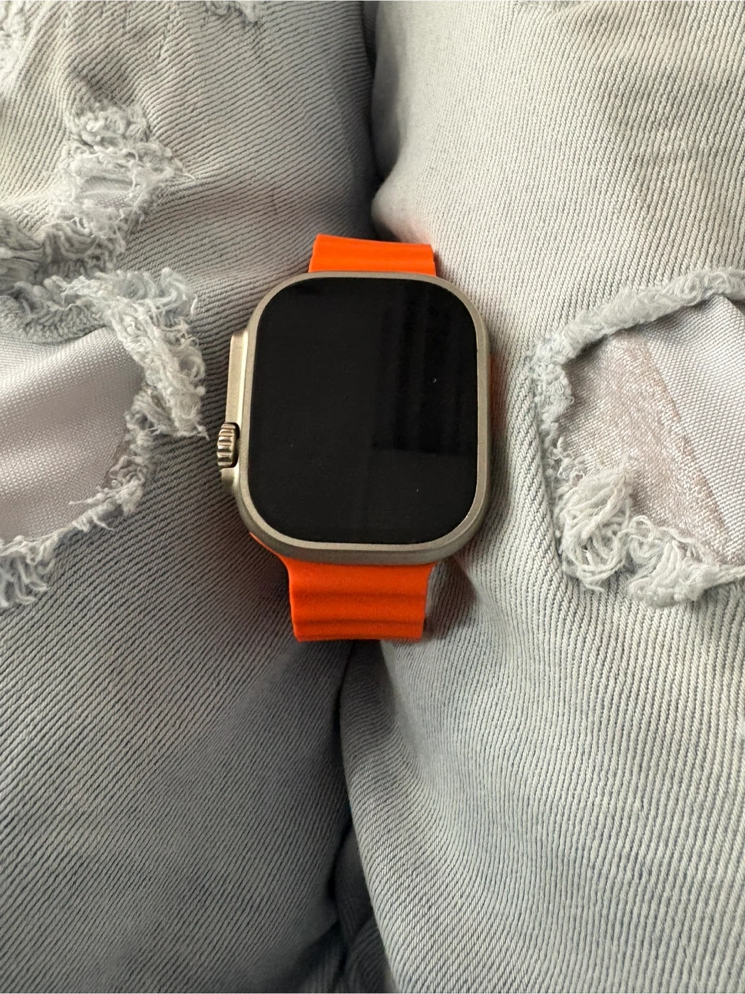 Selling an Apple Watch Ultra with an orange band. It's in great condition and ready for a new owner! The watch is lightweight and portable, perfect for tracking your fitness or staying connected on the go