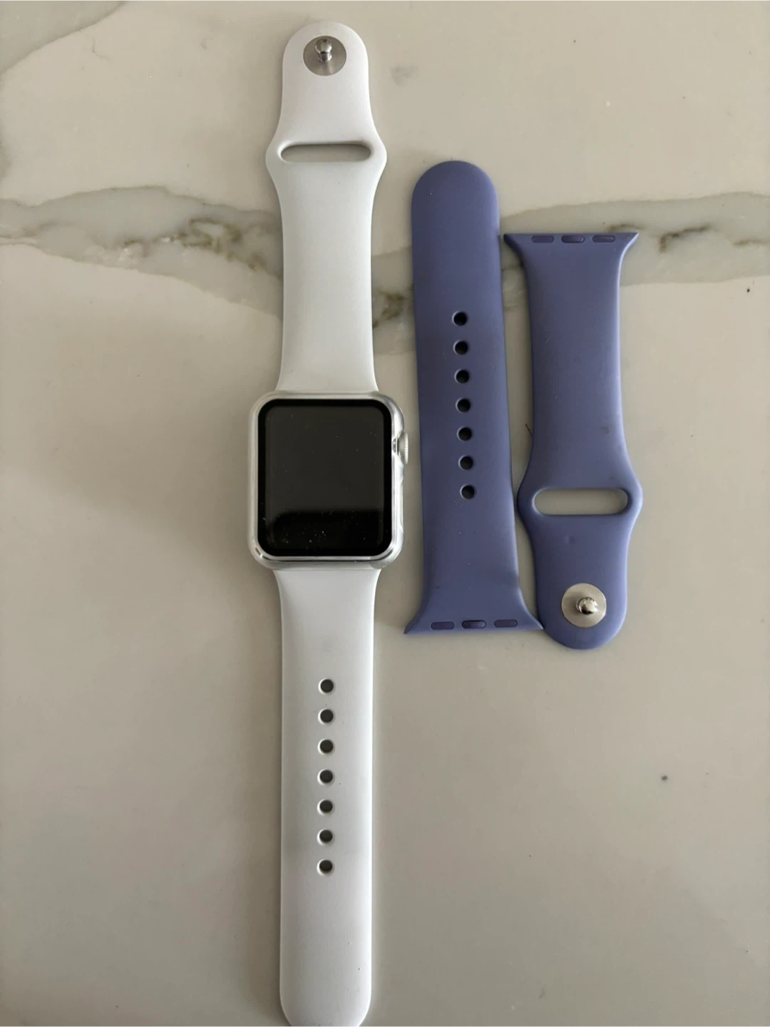 10Selling an Apple Watch with two bands! One is white and the other is a lovely shade of purple. Great for switching up your style!