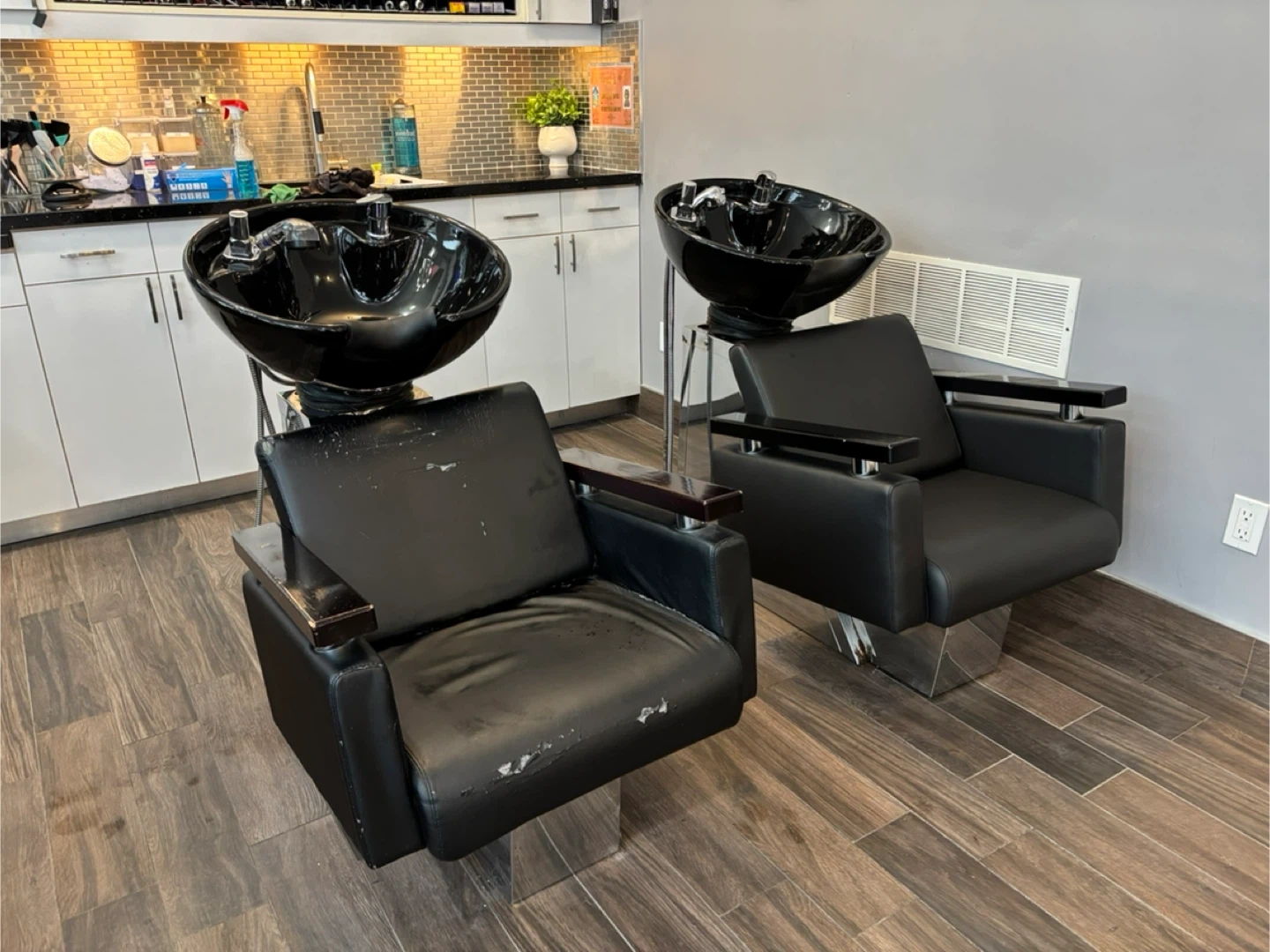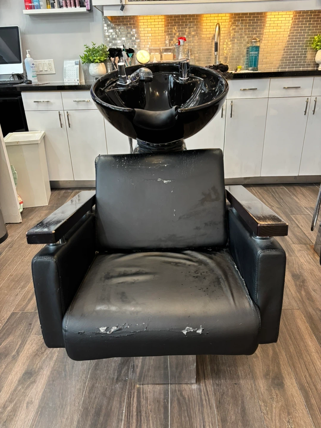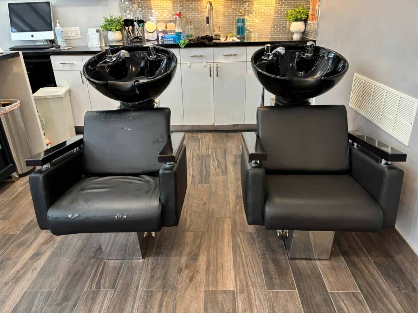 Selling a set of two salon shampoo chairs. They are black with a chrome base. One chair has some wear and tear on the seat. Great for a salon or personal use! Must be picked up between December 23. Make tour best offer and they're yours!