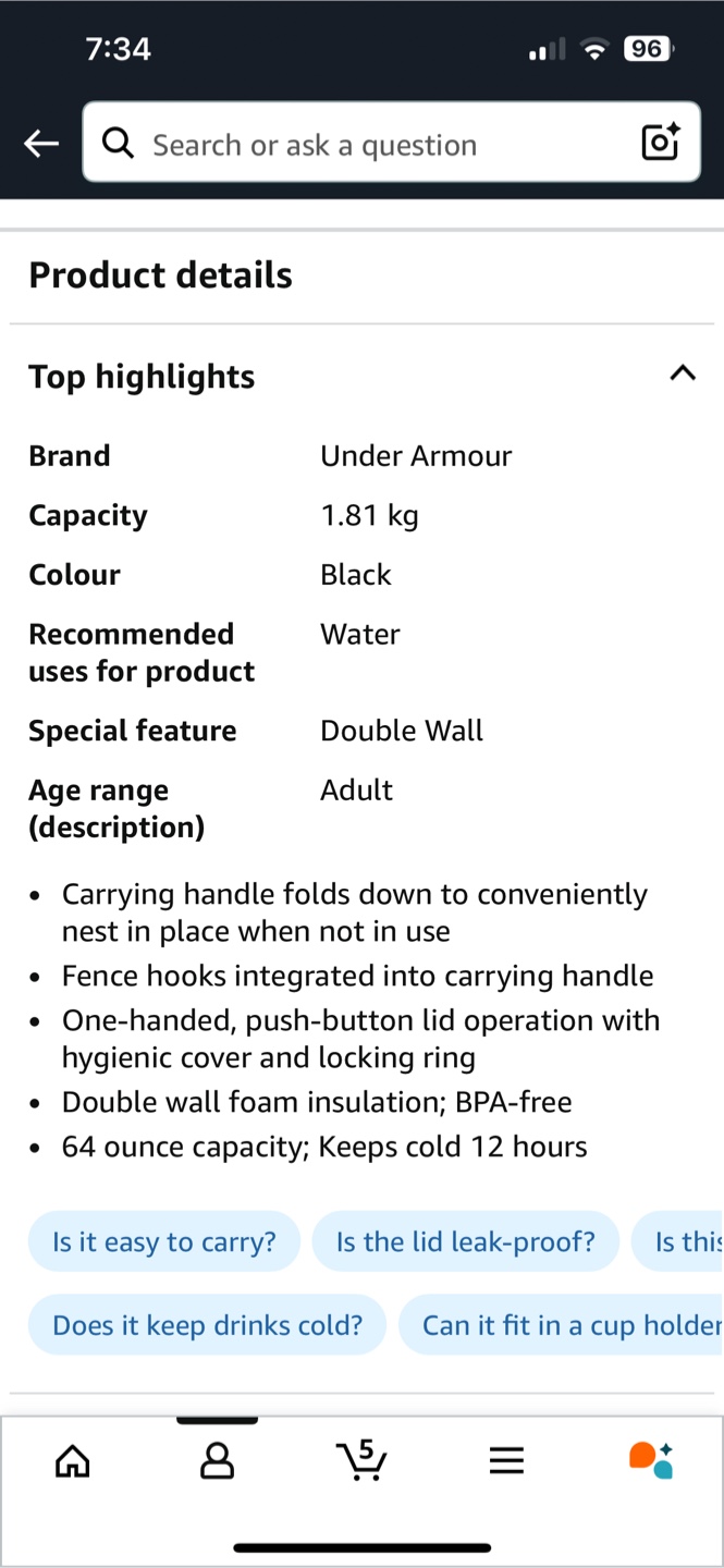 Under Armour 64oz Insulated Hydration Bottle - Black