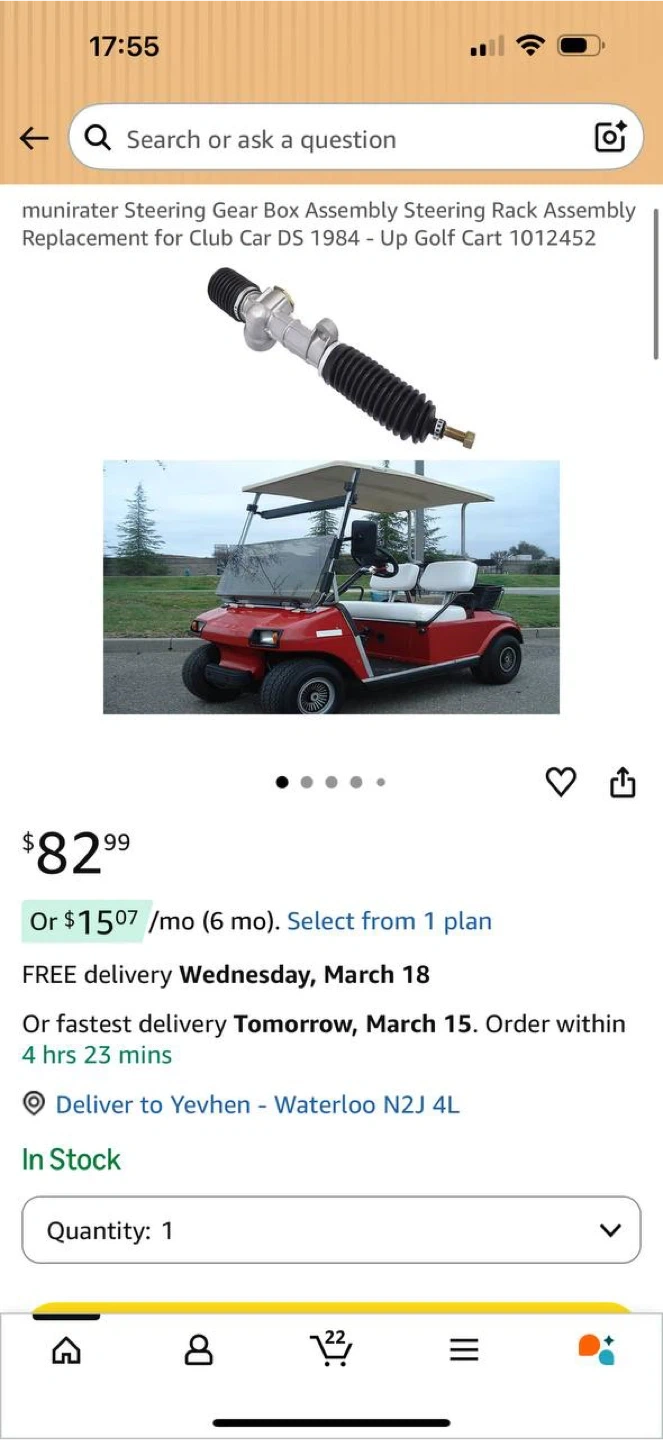 ⚙️ Steering Gear Box Assembly for Club Car DS (1984+) – New 💥 Brand new steering gear box assembly Replacement steering rack for Club Car DS golf carts (1984 and newer). Perfect if your golf cart has loose steering or worn components. ✅ New ✅ Ready to install ✅ Good quality replacement part ✅ Fits Club Car DS 1984+ 💲 Price: $60 📍 Waterloo ‼️FINAL SALE‼️ First come first bought. No deposit no hold.