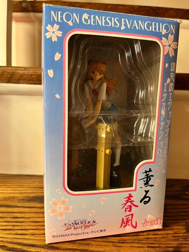 I'm offering a Neon Genesis Evangelion Kaoru Harukaze figure, still in its original box. The box does show some wear and tear, as you can see from the images. This figure is a great addition to any anime collection, showcasing a classic character in a unique pose. It's a delightful find for any collector, with its charming design and nostalgic appeal. Check out my other listings for more cool stuff!