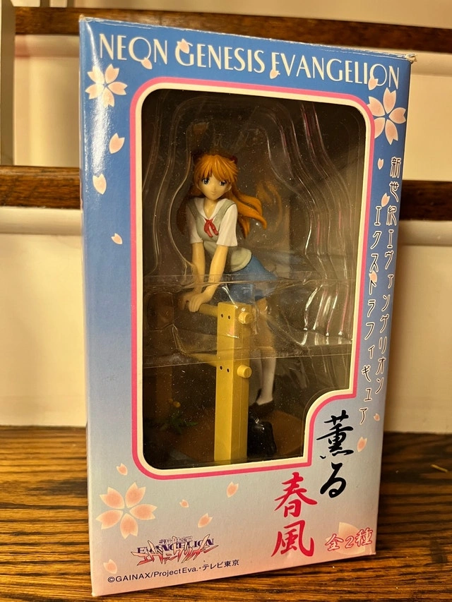 I'm offering a Neon Genesis Evangelion Kaoru Harukaze figure, still in its original box. The box does show some wear and tear, as you can see from the images. This figure is a great addition to any anime collection, showcasing a classic character in a unique pose. It's a delightful find for any collector, with its charming design and nostalgic appeal. Check out my other listings for more cool stuff!