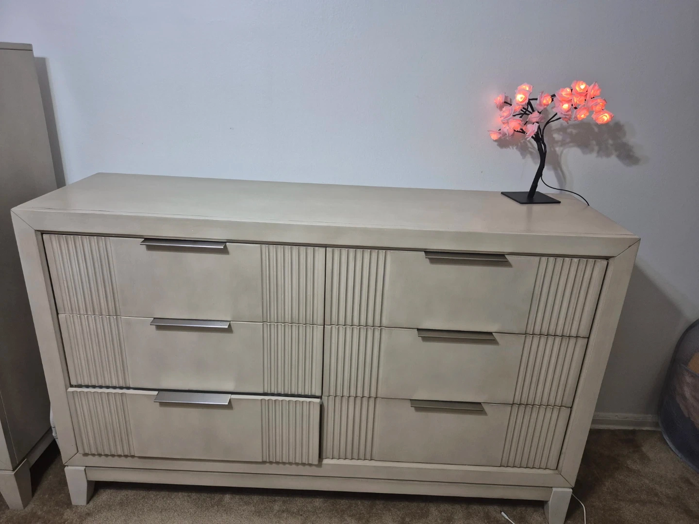 Bedroom items: chest, dresser and Unpack dresser Mirror.