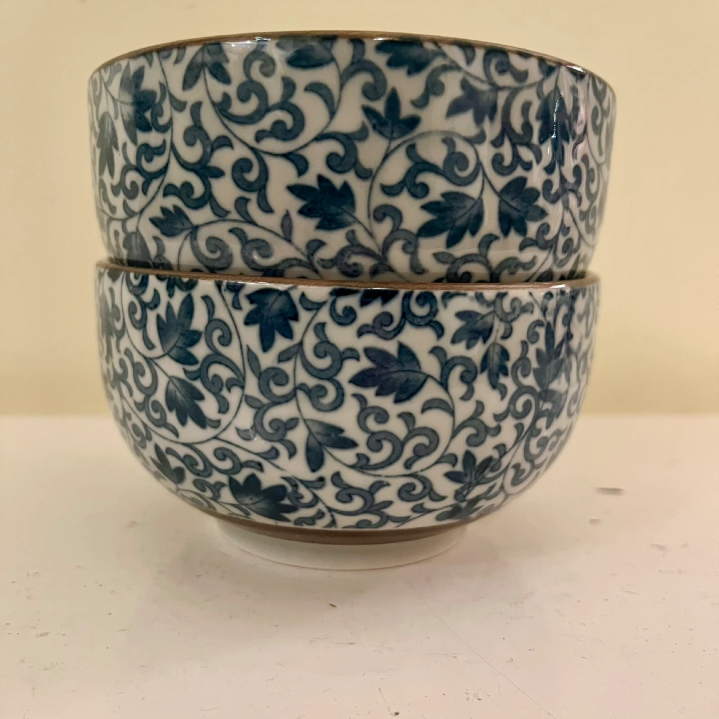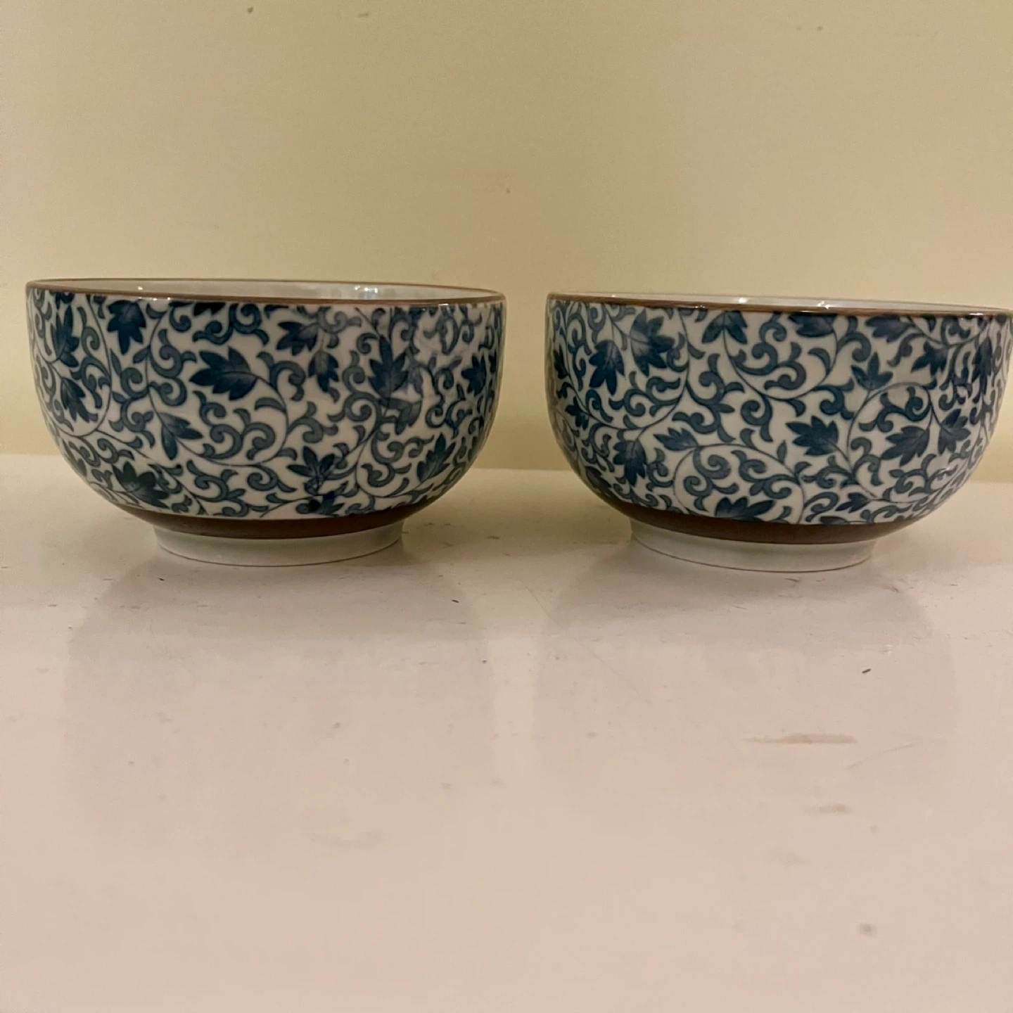These have a classic blue and white underglaze design, which is a common style for Japanese ceramics like Arita or Imari ware, often imported from the late 20th century.