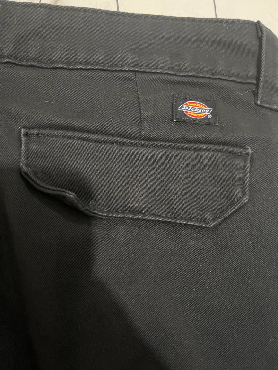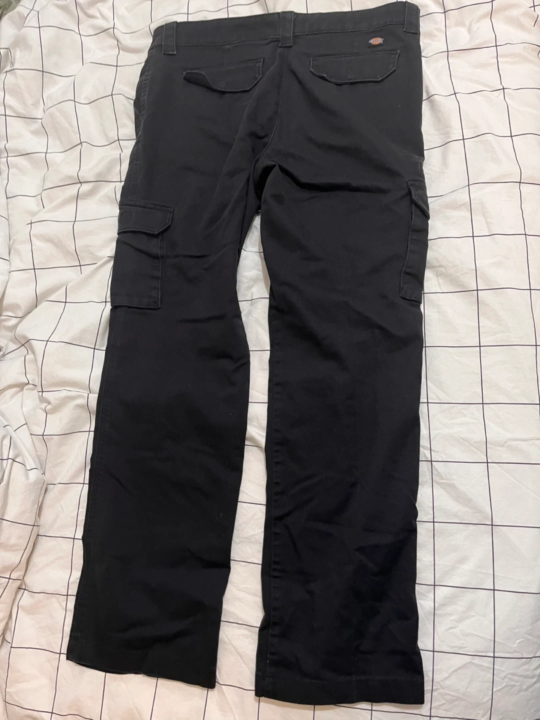 These are black Dickies cargo pants crafted for women. They're made from a durable fabric and feature multiple pockets for utility. These pants are a solid choice for everyday wear or work.
