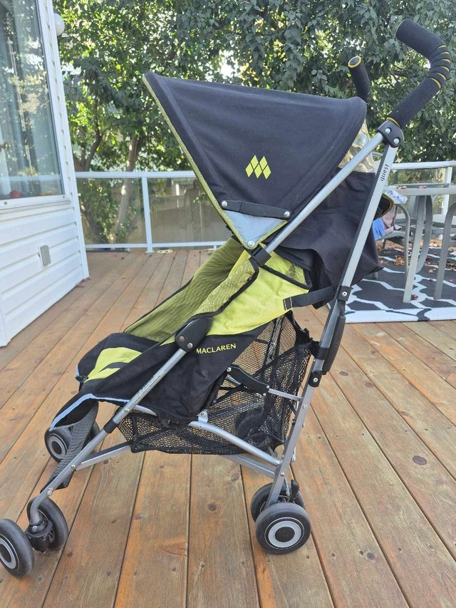 This Maclaren Quest umbrella stroller was bought new and used for 1 child. It is very clean and in new condition, coming from a clean, non-smoking home.