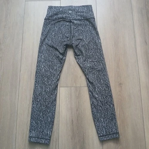 Lululemon Athletica Wunder Under leggings in black and white abstract speckle print. Features: Size 4 (size dot shown), Mid-rise waistband, Full length, Smooth supportive stretch fabric, Signature curved back seam, Logo at waistband, Classic flattering fit. Versatile black/white print that pairs with everything. Perfect for: Gym, Yoga, Running errands, Everyday athleisure. Excellent pre-owned condition. No holes. No visible pilling. Measurements (approx): Waist flat: 11", Rise: ~8–9", Length: ~ 32", Inseam: ~22–24".
