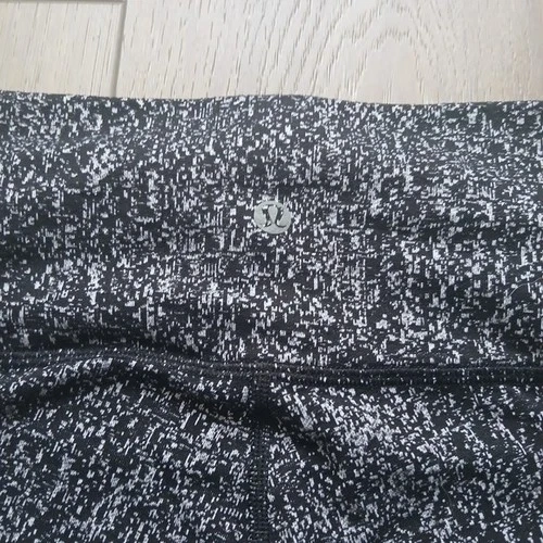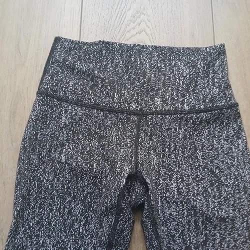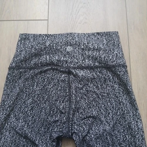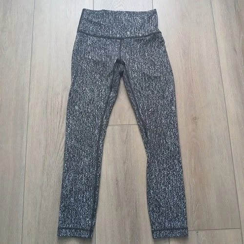 Lululemon Athletica Wunder Under leggings in black and white abstract speckle print. Features: Size 4 (size dot shown), Mid-rise waistband, Full length, Smooth supportive stretch fabric, Signature curved back seam, Logo at waistband, Classic flattering fit. Versatile black/white print that pairs with everything. Perfect for: Gym, Yoga, Running errands, Everyday athleisure. Excellent pre-owned condition. No holes. No visible pilling. Measurements (approx): Waist flat: 11", Rise: ~8–9", Length: ~ 32", Inseam: ~22–24".