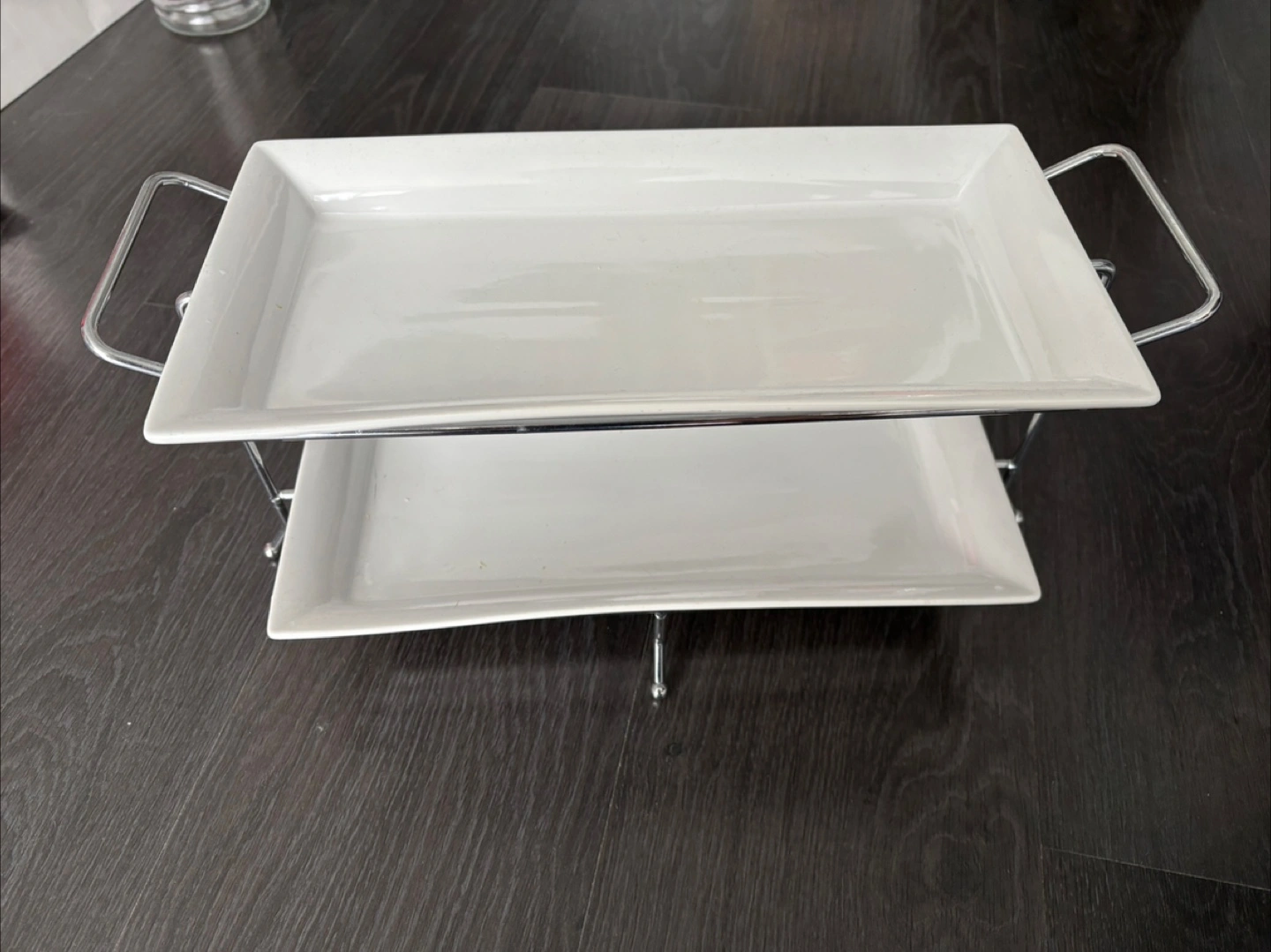 Buy & SellTwo-Tiered Serving Platter with Metal StandTwo-Tiered Serving Platter with Metal Stand$5White porcelain rectangular platters. Chrome-plated metal stand. Perfect for parties or entertaining. Great condition.ConditionLike newWHERE TO MEETmatcha matchaView MapSELLERverifiedZoeyChurch Yonge Corridor27022 reviews3 chats·1 favorites·44 viewsSEND CHAT TO SELLERHi Zoey! I’m interested in your listing.Hi Zoey! I’m interested in your listing.Get the Karrot app to chatSign In to chat