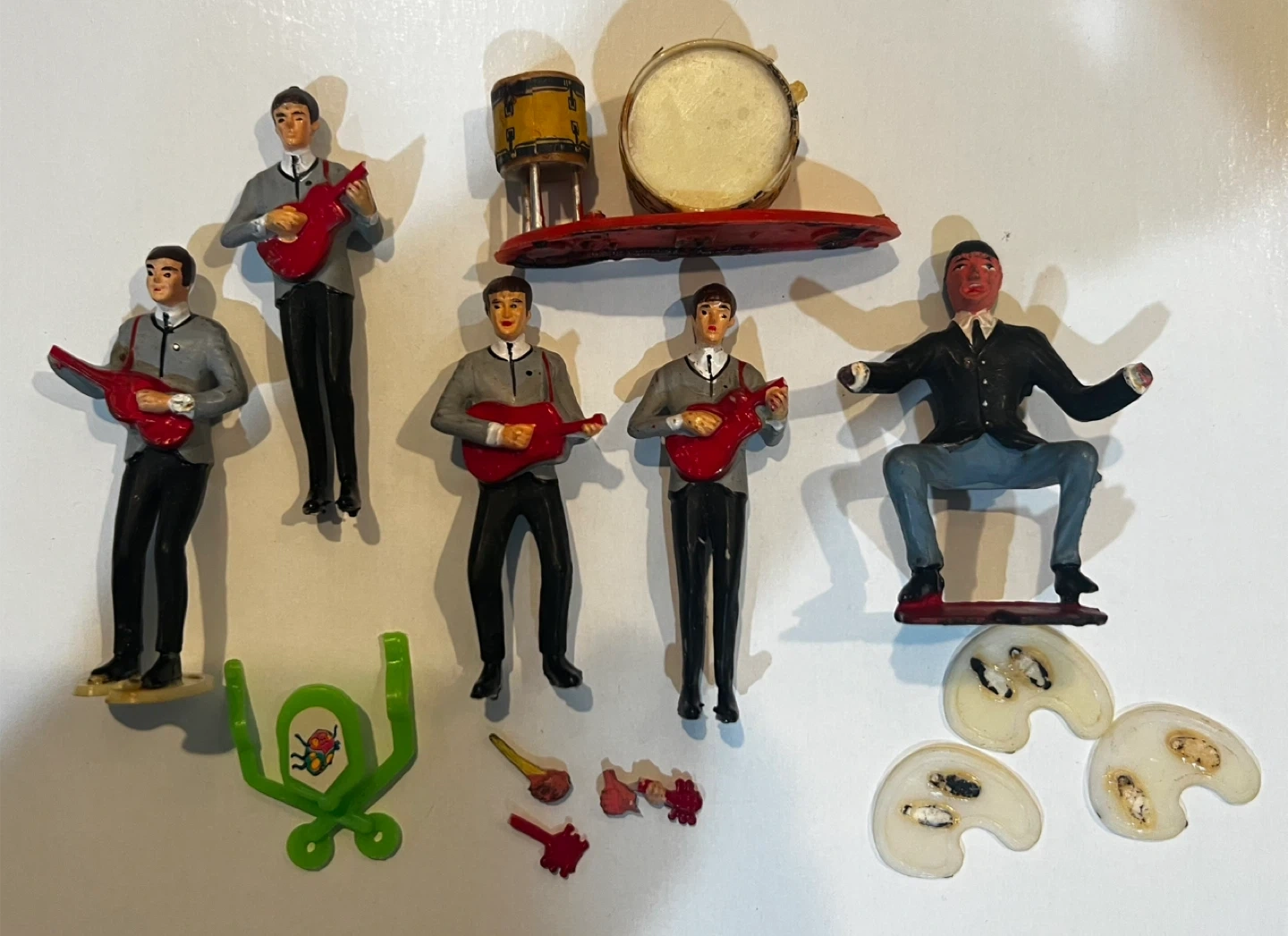 Here we have a collection of Beatles cake toppers. Overall condition is Good with bits and pieces missing.