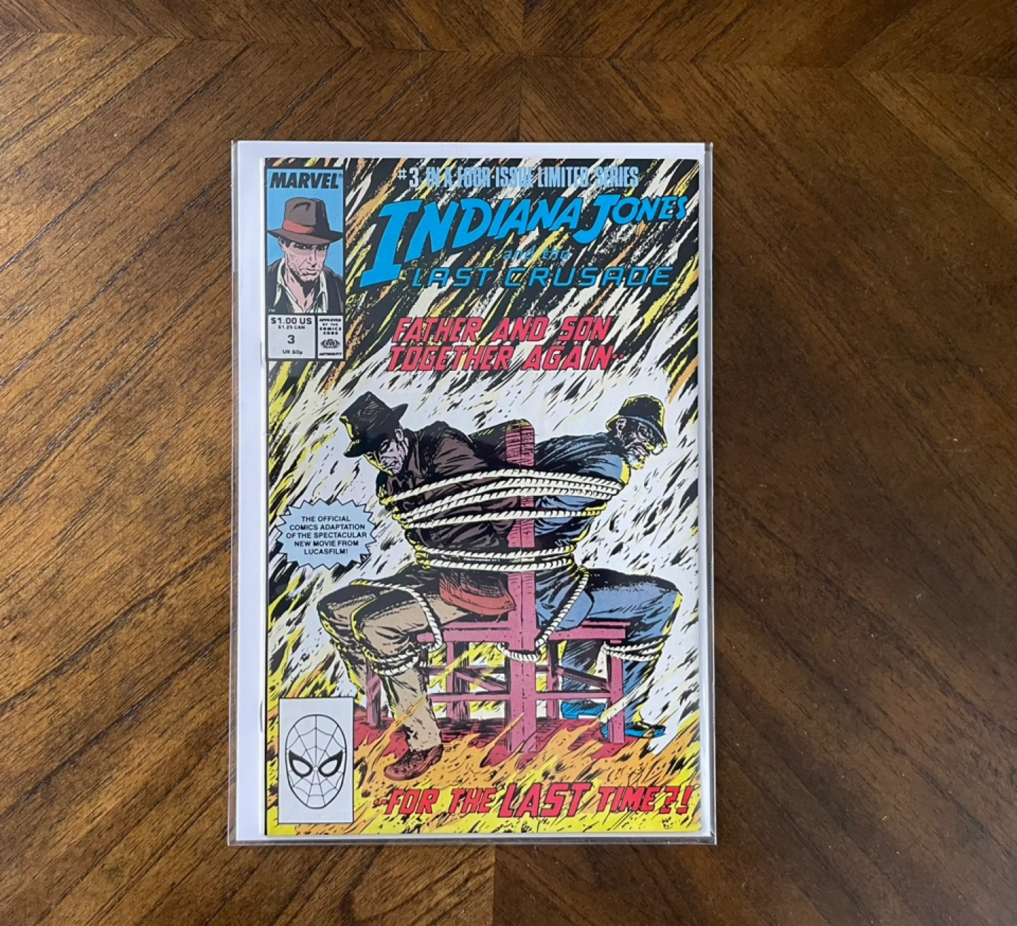 This is Marvel's Indiana Jones and the Last Crusade comic book, issue number 3. It's the official comics adaptation of the movie from Lucasfilm. The comic features father and son together again.