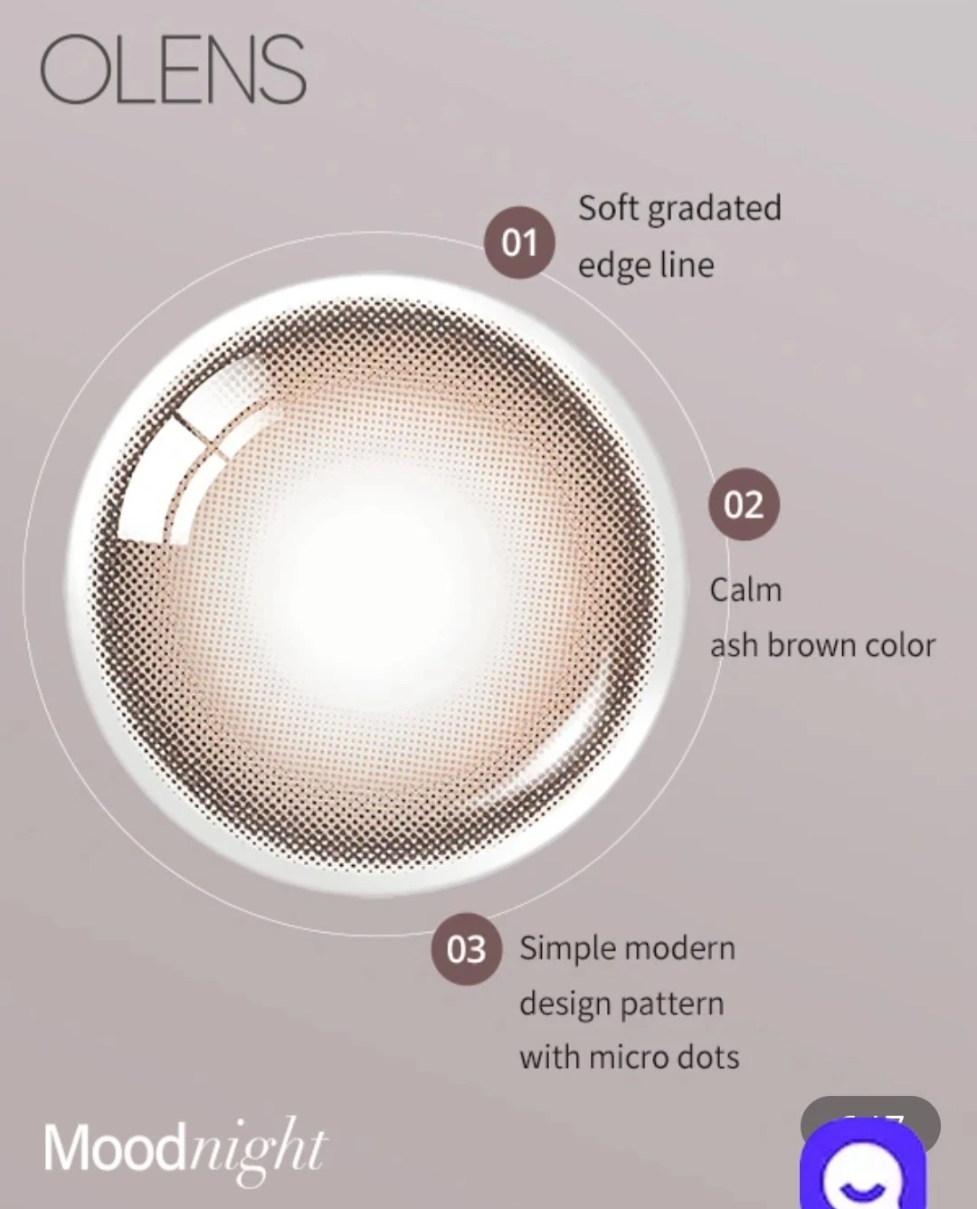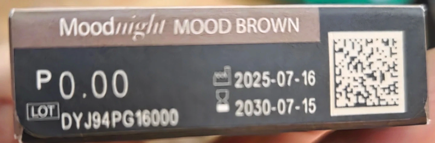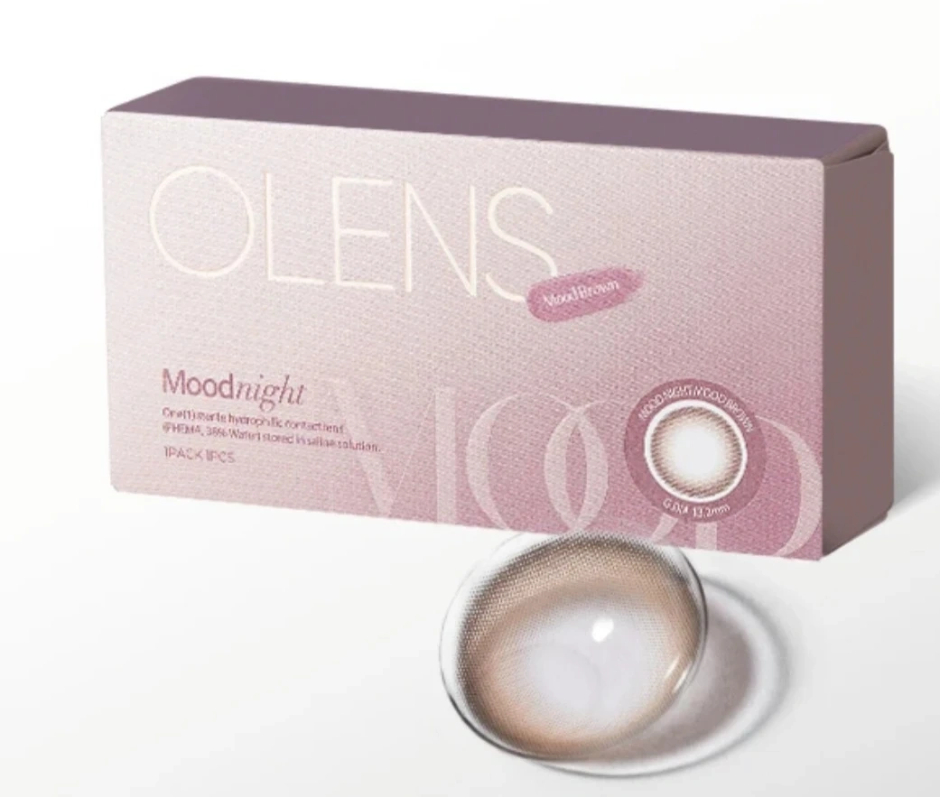 OLENS Moodnight One Day contact lenses in Mood Brown. These are hydrophilic daily disposable lenses. 10-pack colored contact lenses for $20. Only 2 used, 8 remaining. Not sold in Canada, ordered from the U.S. Expiry date is 2030-07-15.