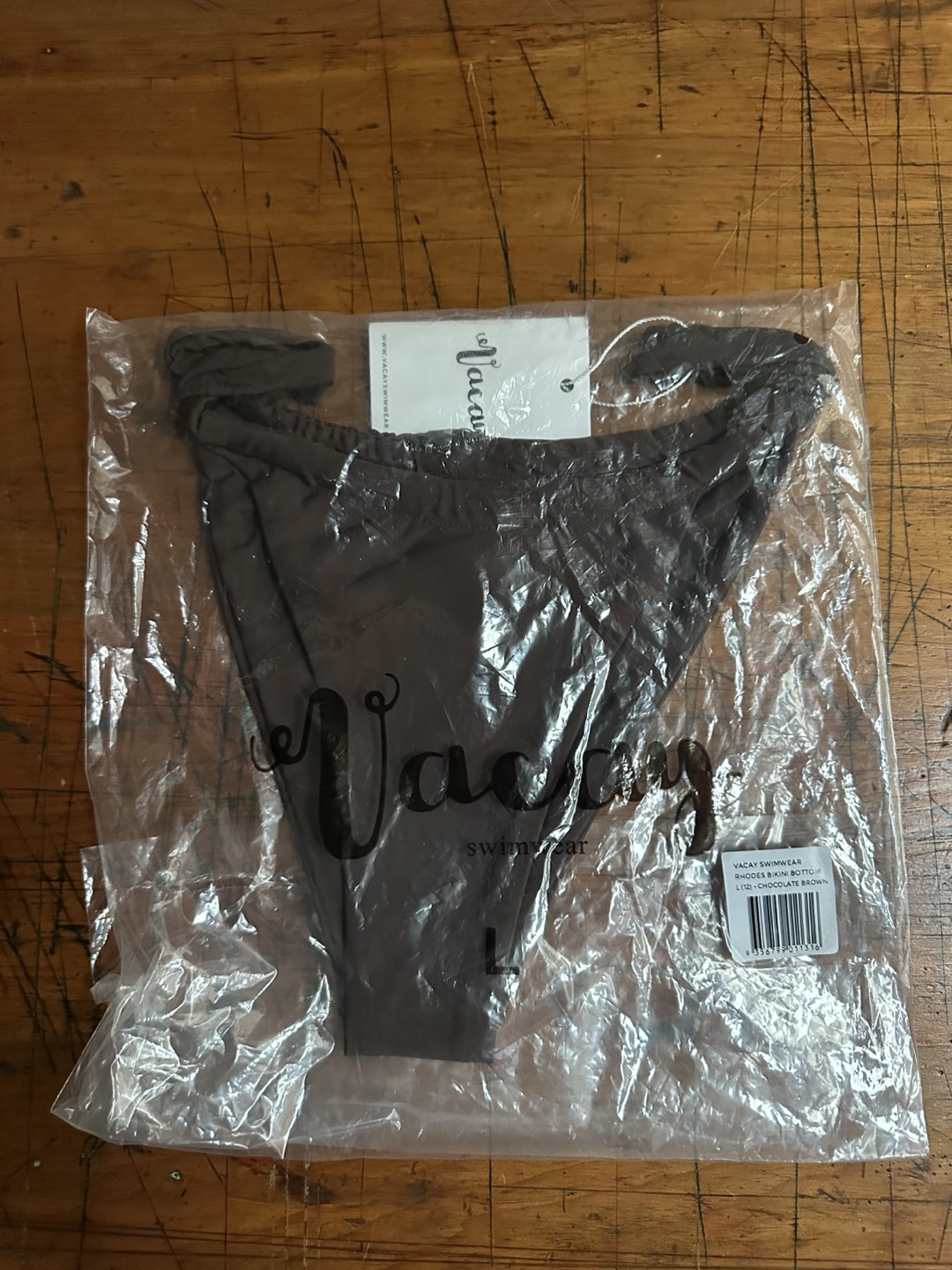 Vacay Swimwear Rhodes Bikini Bottoms Brown Large NEW