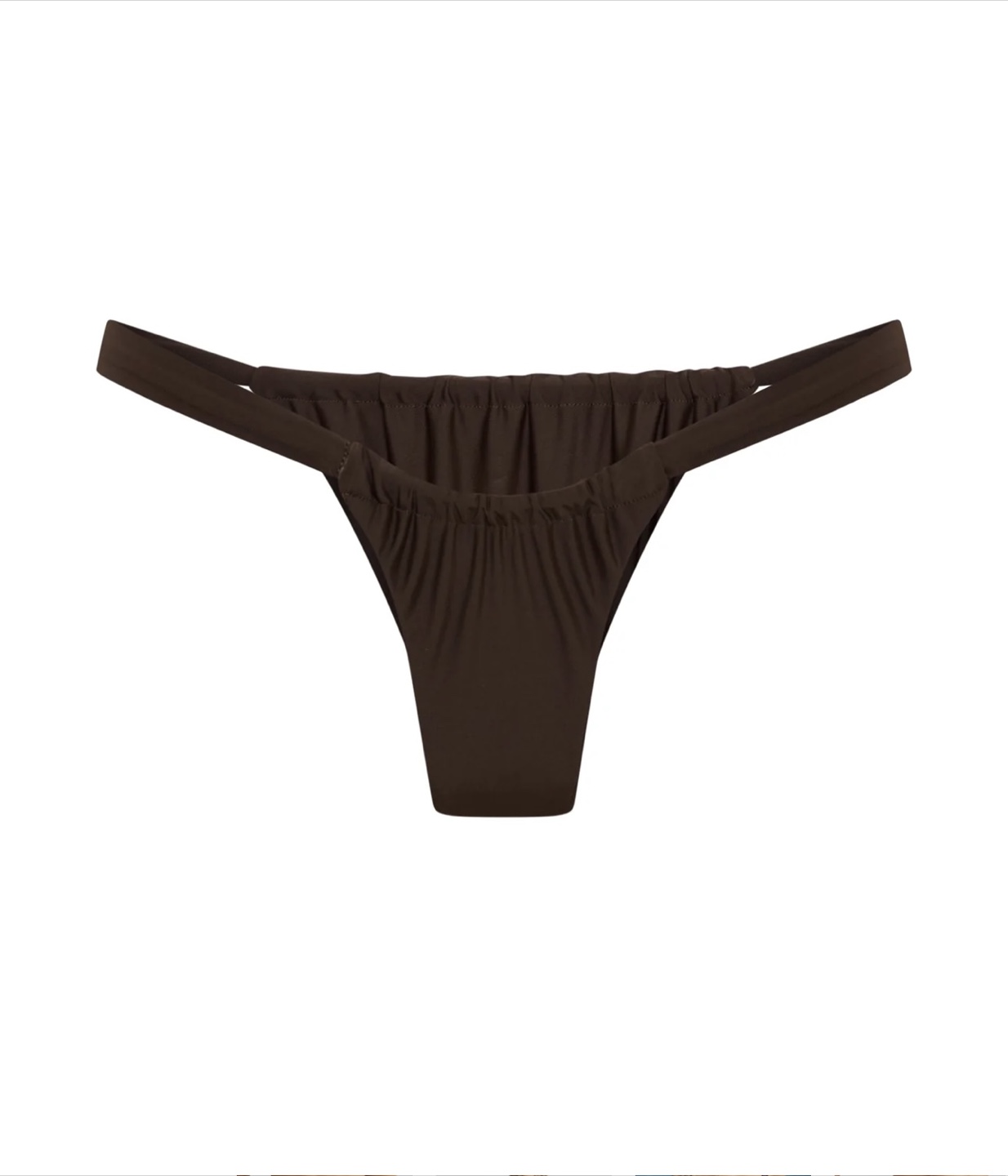 Vacay Rhodes bikini bottoms in chocolate brown offer an adjustable coverage for a versatile fit and a premium, sustainable fabrication for ultimate comfort.