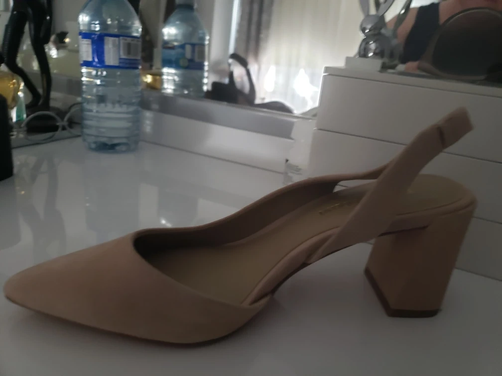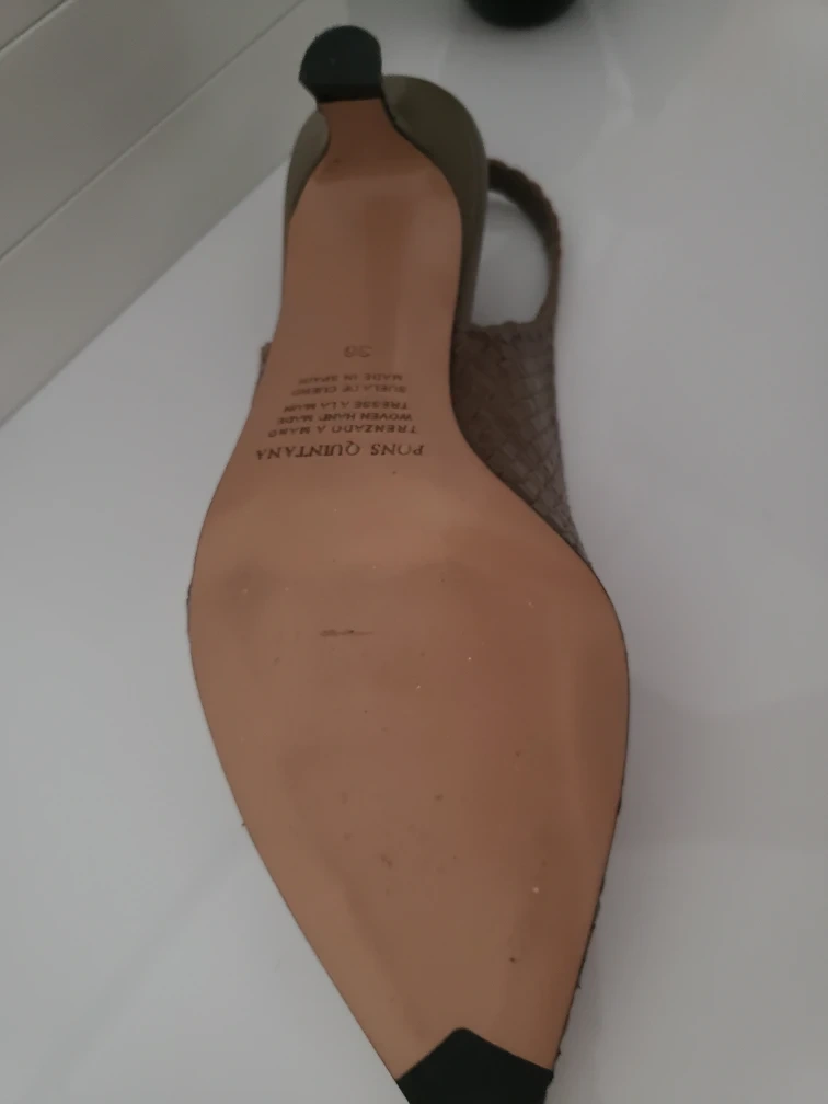 These stylish slingback heels are from Pons Quintana, made in Spain. They're a size 36, which is about a size 6 in Canada/US. The upper and sole are leather, and they feature a woven design. A chic and comfortable choice for any occasion!