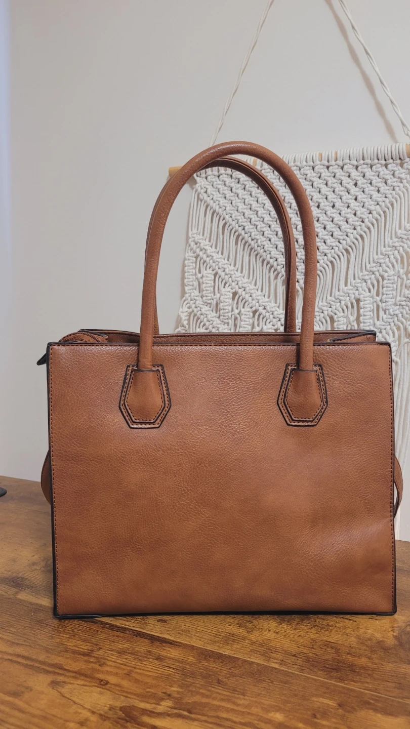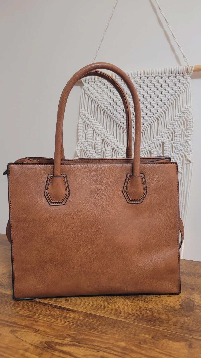 Brown Faux Leather Tote Bag with Shoulder Strap