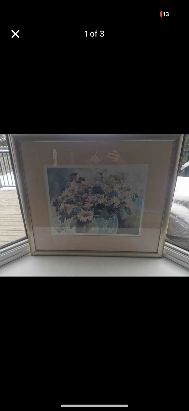 Buy & SellPicture "Flowers in Vase" by David Barton 1981Picture "Flowers in Vase" by David Barton 1981$15A lovely framed watercolour painting of flowers in a vase, signed by artist David Barton and dated 1981.WHERE TO MEETCheck LocationView MapSELLERBardhaHurontario100 reviews0 chats·1 favorites·5 viewsSEND CHAT TO SELLERHi Bardha! I’m interested in your listing.Hi Bardha! I’m interested in your listing.Get the Karrot app to chatSign In to chat