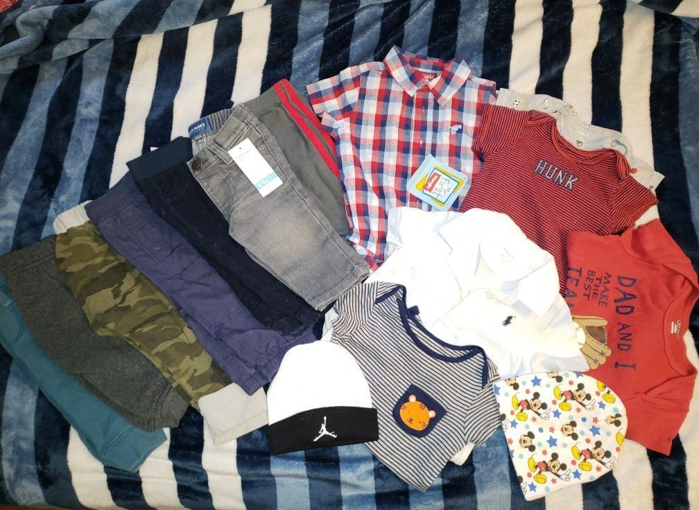 Some items are new with tags. The rest are used and in excellent condition. I have several boys and girls clothing bundles and sets available in various sizes. Pampers available too! Check out my listings.