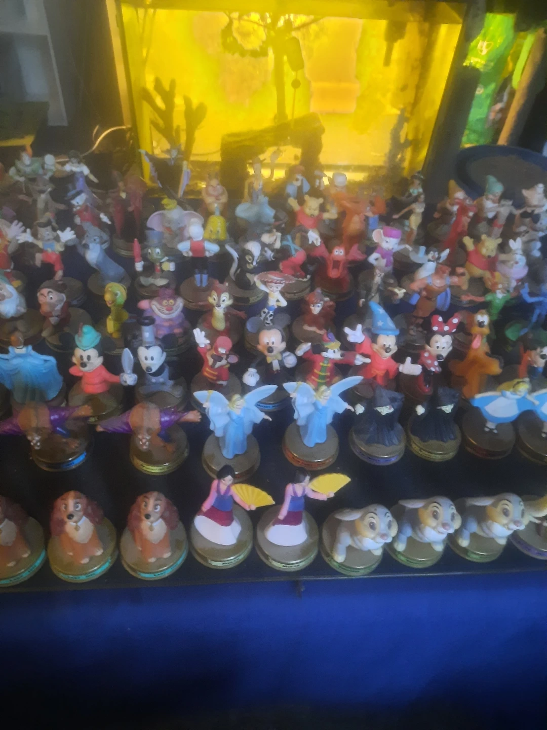 500 obo full set 100 years of disney and extra This is a substantial collection featuring many beloved Disney characters. Each figurine is mounted on a circular base, showcasing a wide variety of classic and popular figures. It's a great set for any Disney enthusiast or collector!