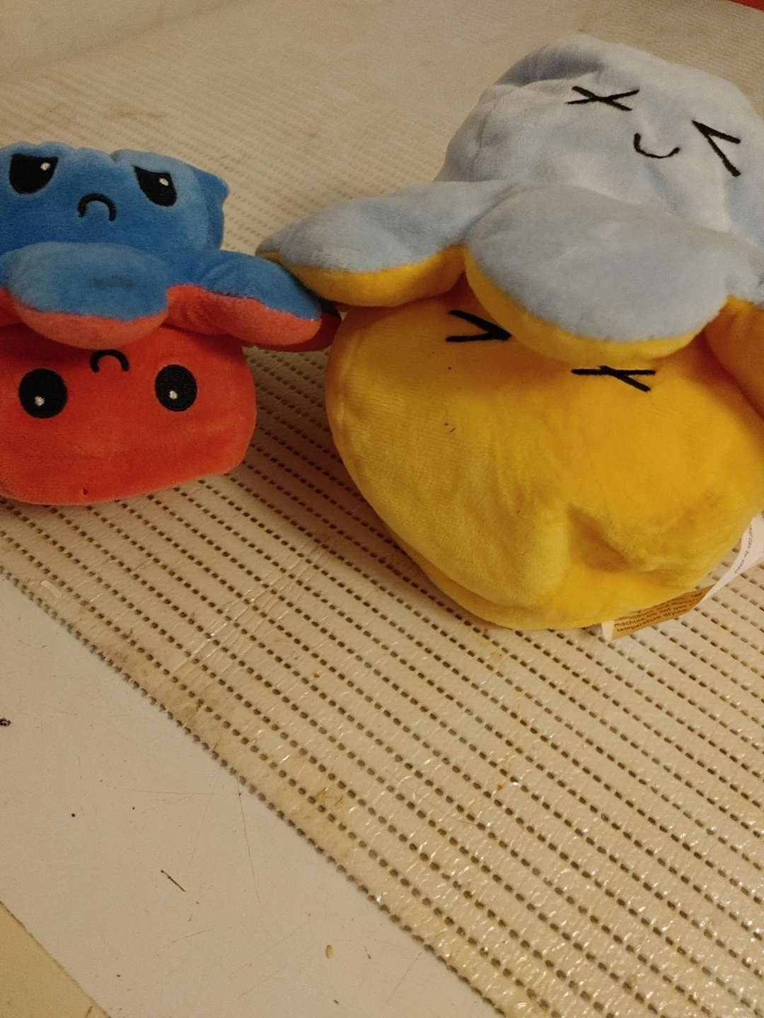 Two-sided plush toy featuring a happy and a sad octopus. It's soft and huggable. Fun for expressing emotions!