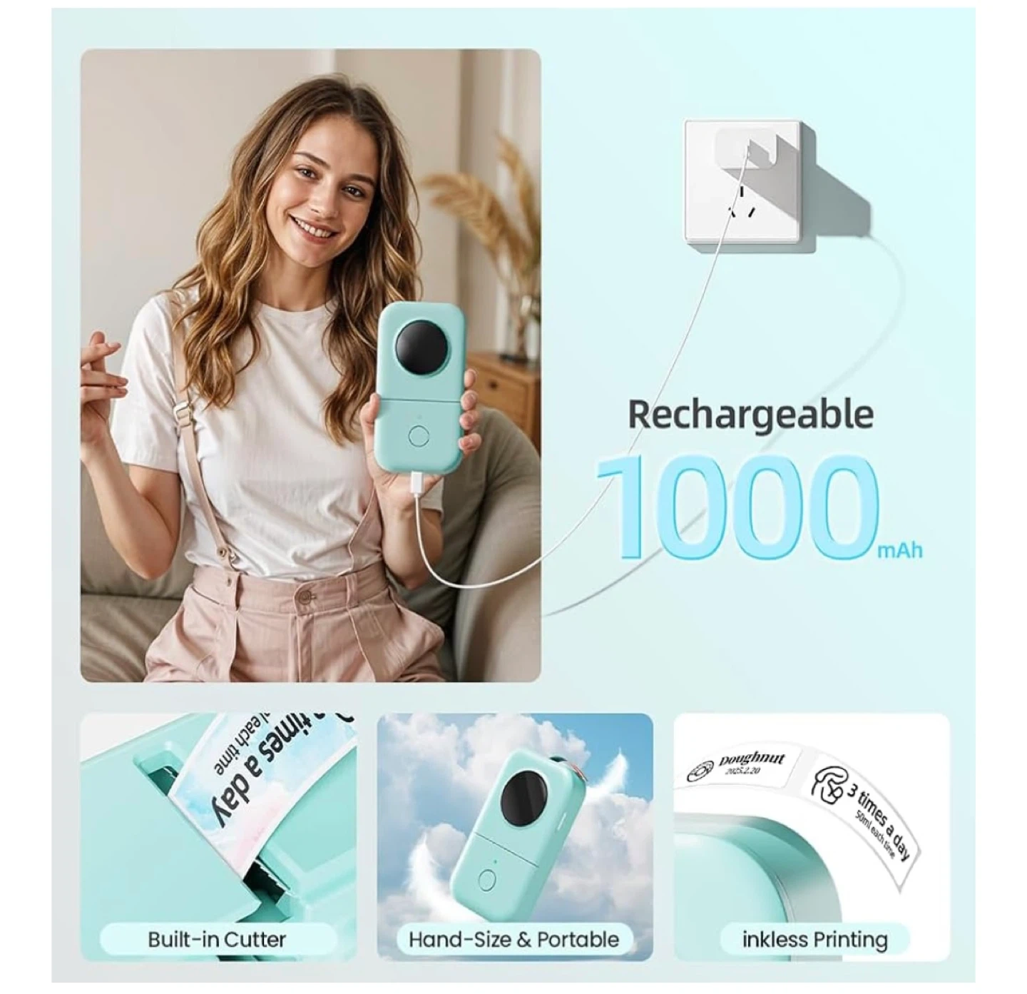 Wireless & Portable - The mini-size, Bluetooth-connected Phomemo label printer offers convenient and fast printing from your mobile device. It has a built-in, durable rechargeable battery for extended use. The compact design allows it to easily slide into your pocket for portability