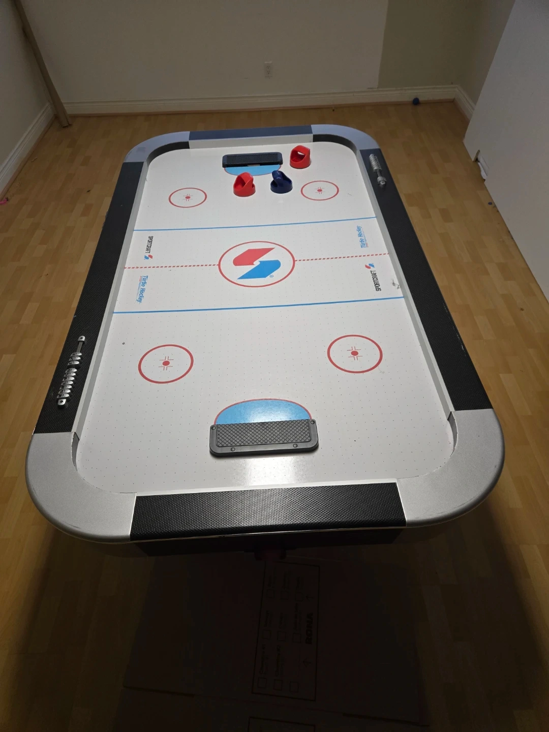 This Sportscraft Turbo Hockey air hockey table is ready for some fun! It includes pucks and mallets for gameplay. This table's a great way to entertain guests at parties or for family game nights.