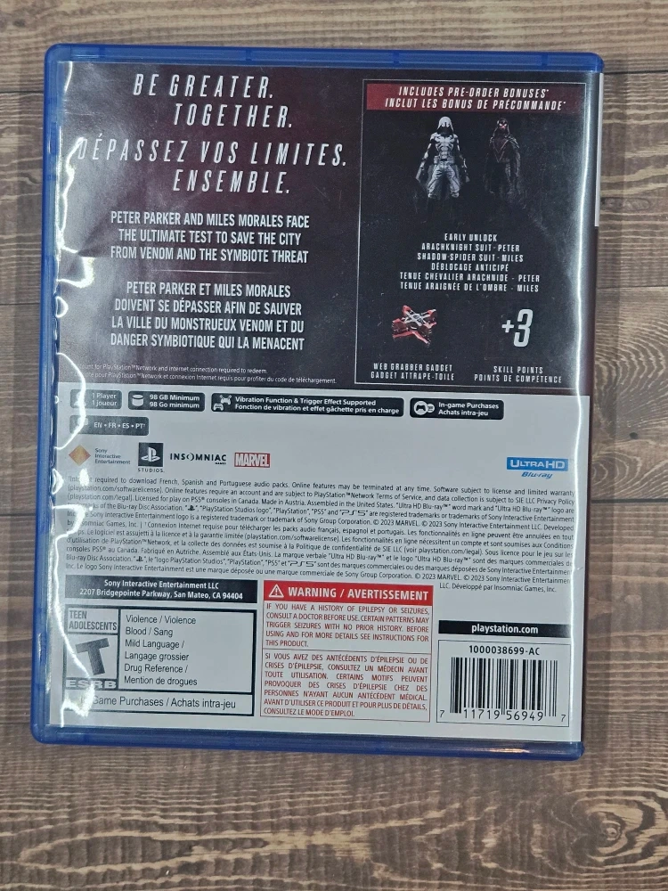 Selling Marvel's Spider-Man 2 for the PS5, Launch Edition. Peter Parker and Miles Morales team up to save the city from Venom and the Symbiote threat. Includes pre-order bonuses.