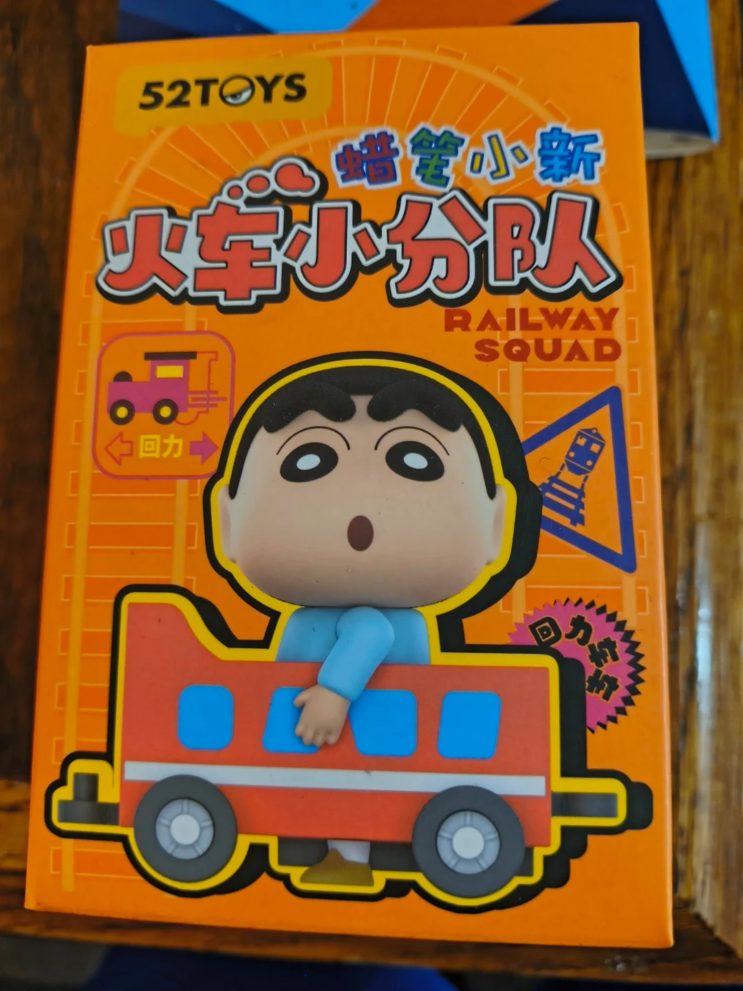 Selling a 52TOYS Crayon Shinchan Railway Squad figure! The box indicates it's suitable for ages 15 and up, and the material is PVC/ABS. It's part of the Animation International (Shanghai) Ltd series.