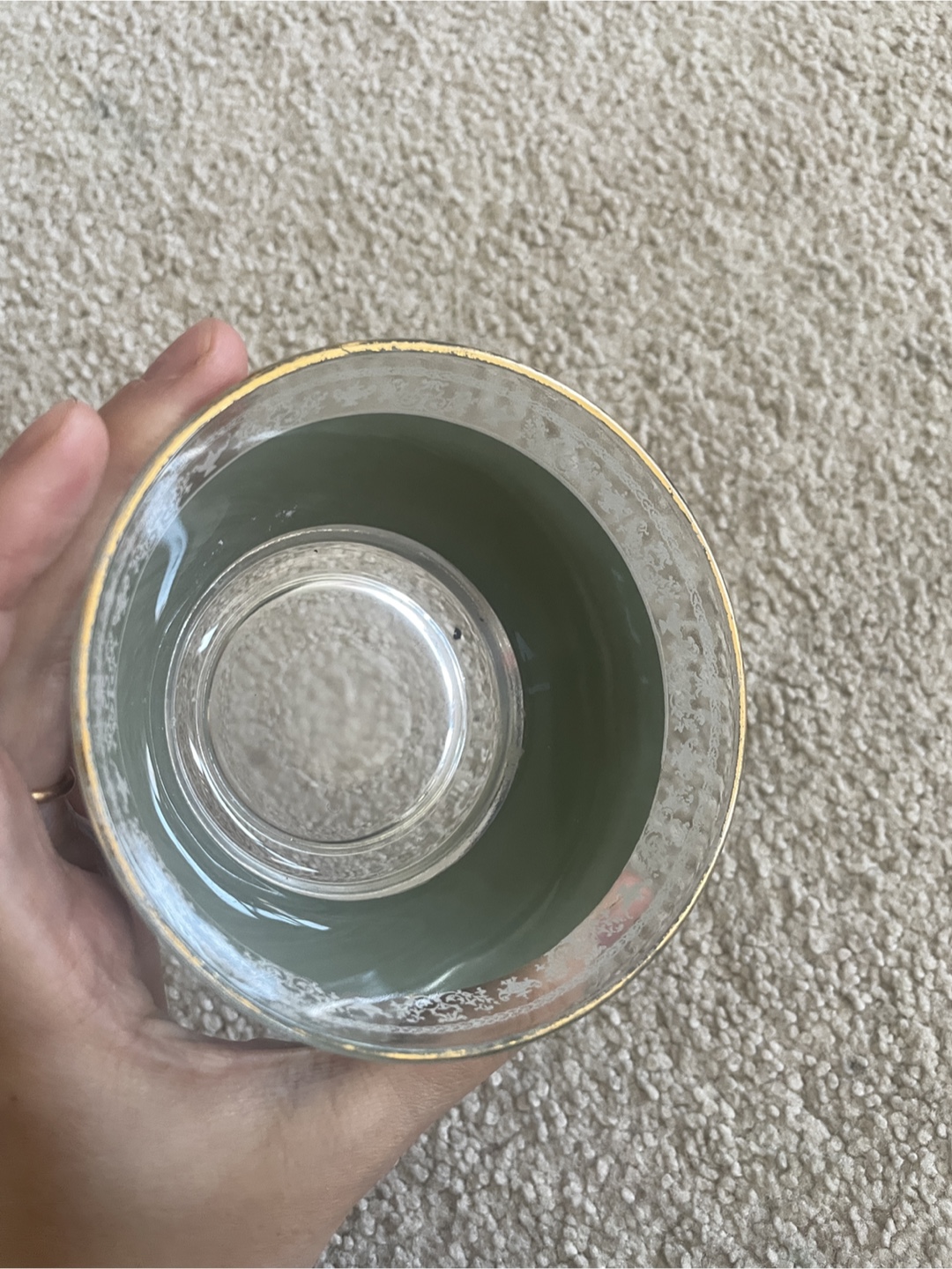 Vintage Green Glass Bowl with White Silhouettes